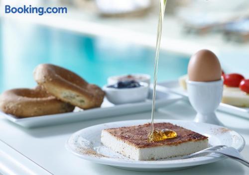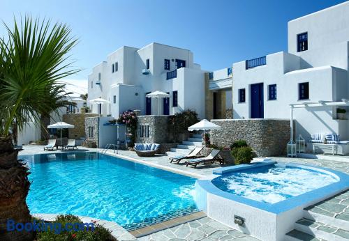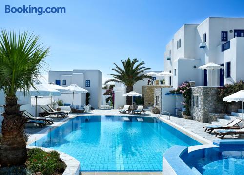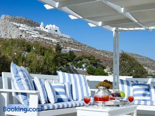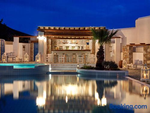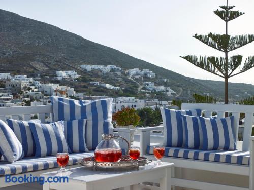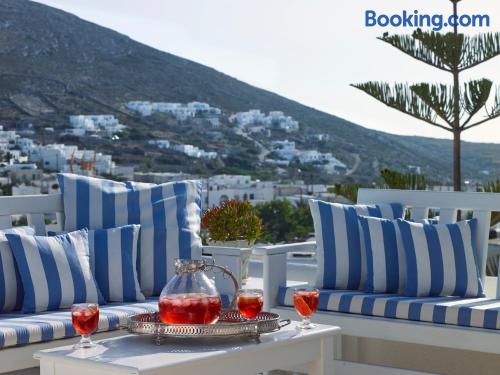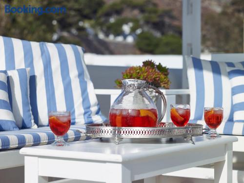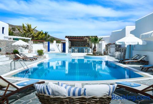 Folegandros Apartments is situated very close to the central square of Chora. Its swimming pool is located right in the middle of the complex and is truly the heart of the place with its festive snack bar!