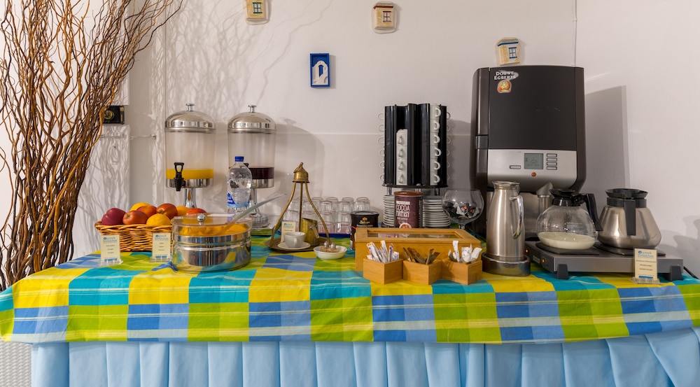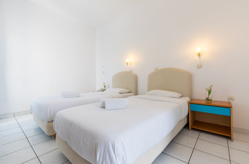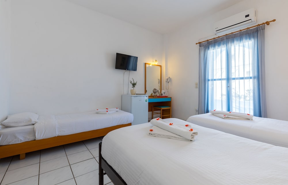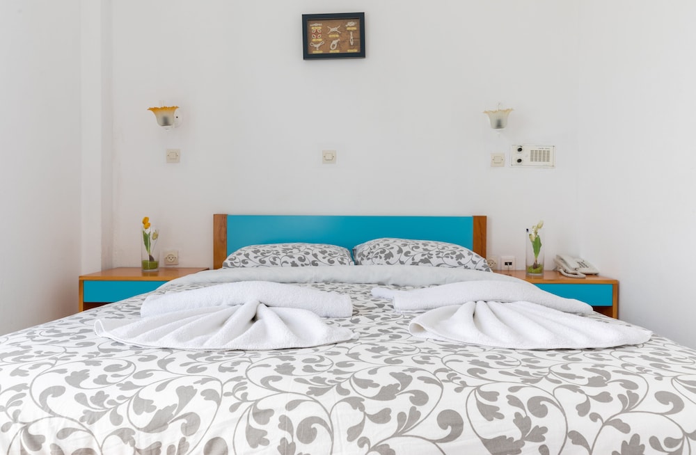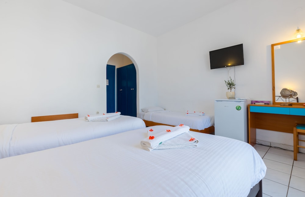 Når du har Hotel Kalma i Santorini som overnattingssted, bor du nær flyplassen, kun 2 minutter å kjøre fra Santorinikalderaen og 6 minutter fra Kamari strand. Dette hotellet ligger 3,9 mi (6,3 km) unna Athinios havn og 6,4 mi (10,3 km) unna Perivolos strand. Føl deg som hjemme i et av de 37 aircondition-avkjølte gjesterommene, som også har kjøleskap. Rommene har egen møblert balkong eller terrasse. Du kan holde deg oppdatert med wi-fi (inkludert) på rommet, og underholdningen er sikret med parabol-TV. Badene har dusj og hårføner. Avstandene som vises er rundet av til nærmeste 0,1 kilometer.
