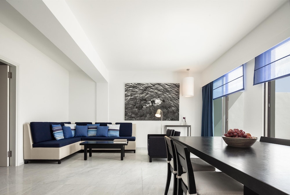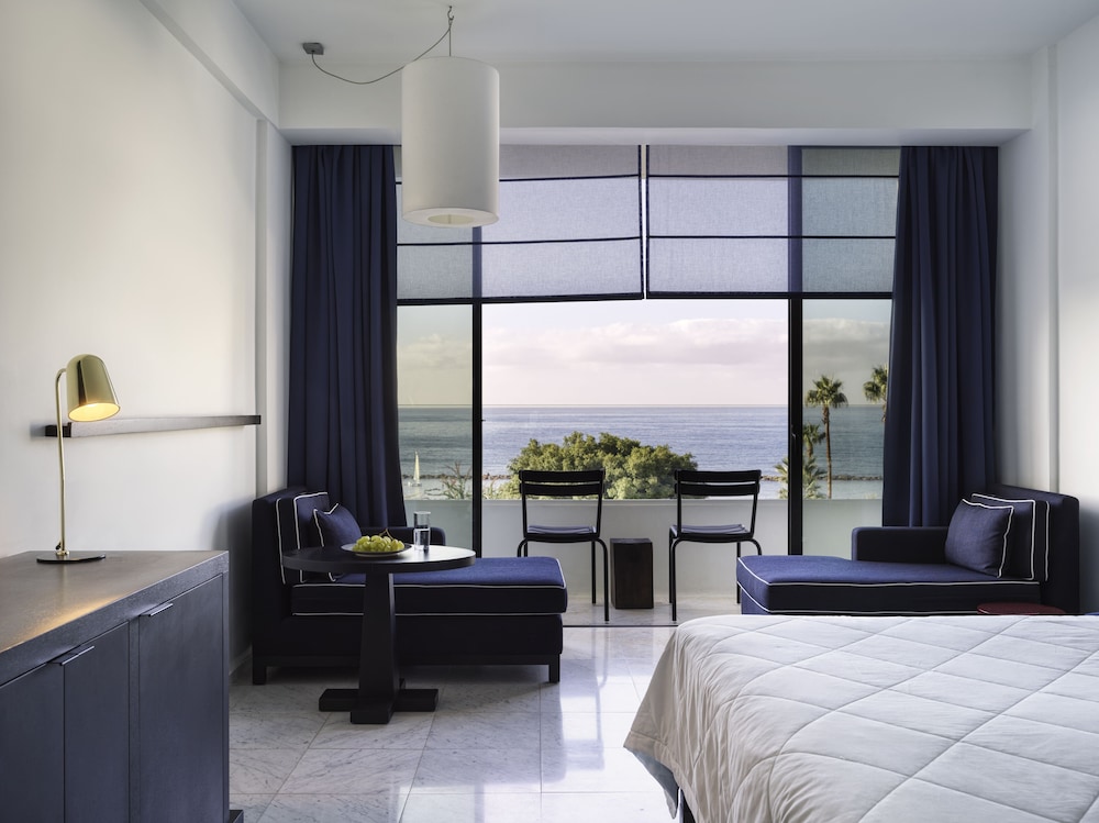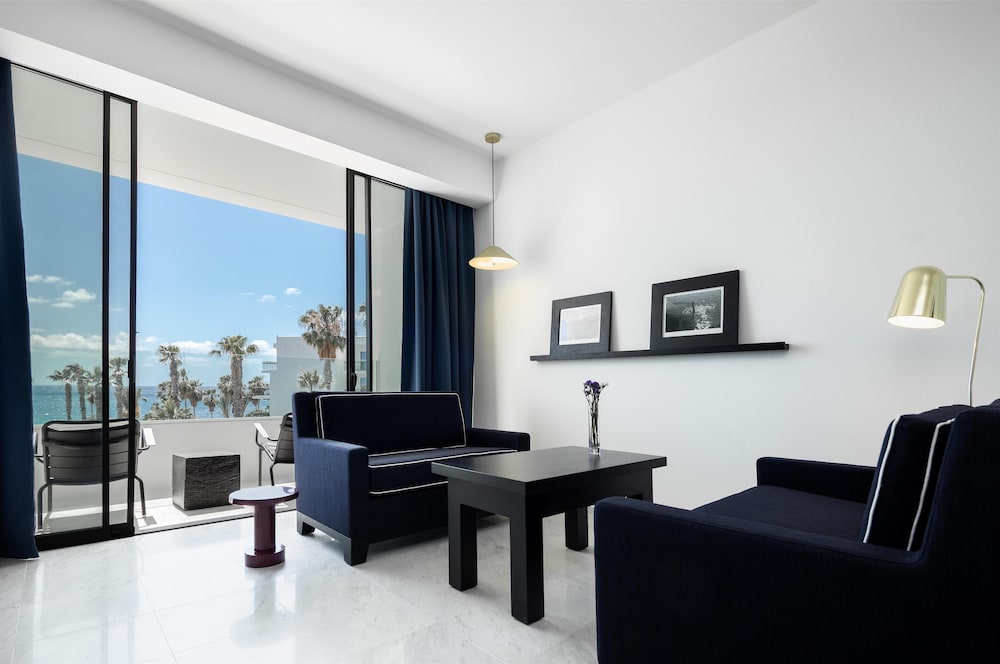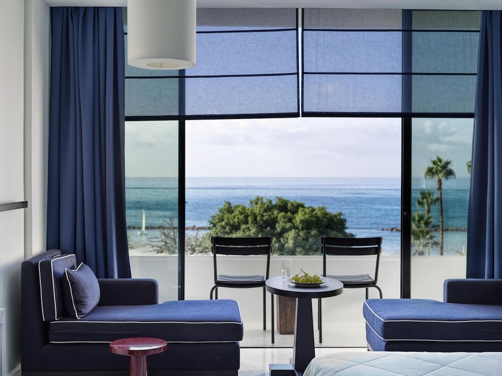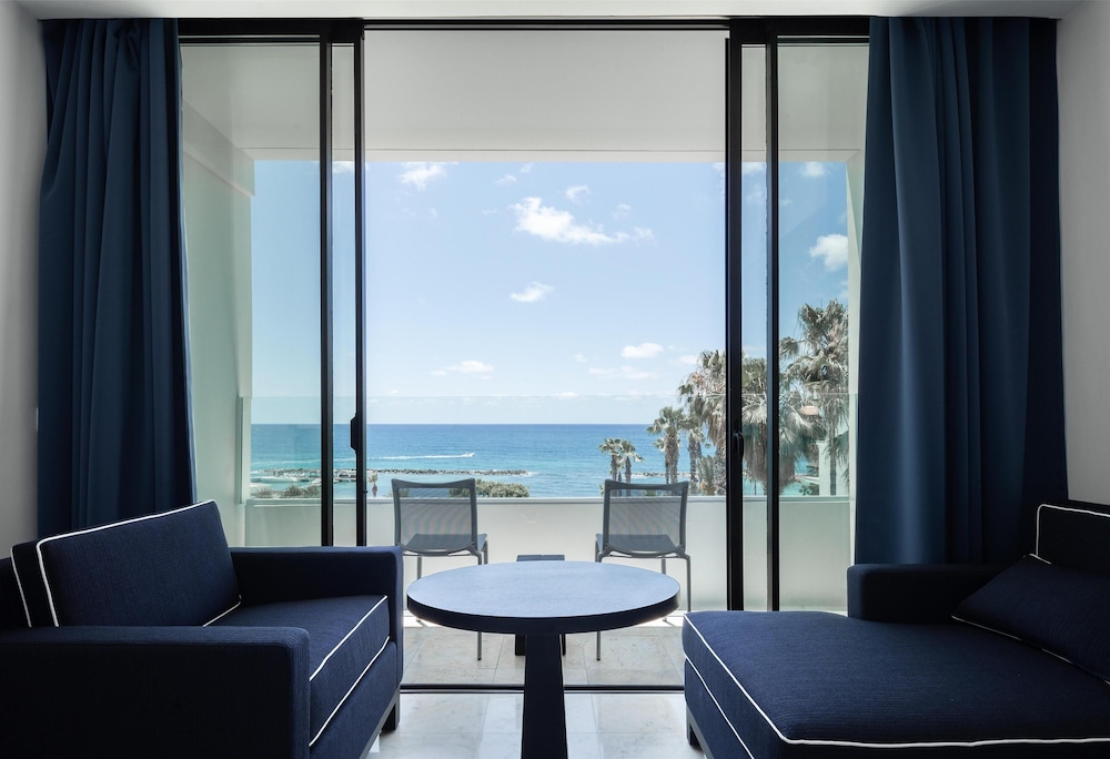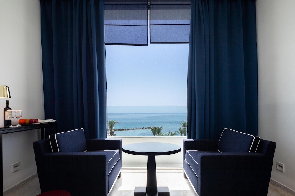 Velger du Almyra i Páfos som overnattingssted, bor du ved vannkanten, mindre enn 10 minutters gange fra Pafos havn og Alykes-stranden. Dette hotellet med familievennlig profil ligger 8,4 mi (13,5 km) unna Coral Bay Beach og 0,6 mi (0,9 km) unna Pafos arkeologiske park. Føl deg som hjemme i et av de 187 gjesterommene, som er individuelt dekorert og utstyrt med minibar og smart-TV. Du kan holde deg oppdatert med wi-fi (inkludert) på rommet, og underholdningen er sikret med parabol-TV. Badene har dusj, regndusjhode og designertoalettartikler. Rommet har safe og flaskevann (inkludert), samt telefon med lokalsamtaler (inkludert). Avstandene som vises er rundet av til nærmeste 0,1 kilometer.