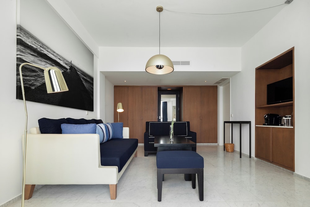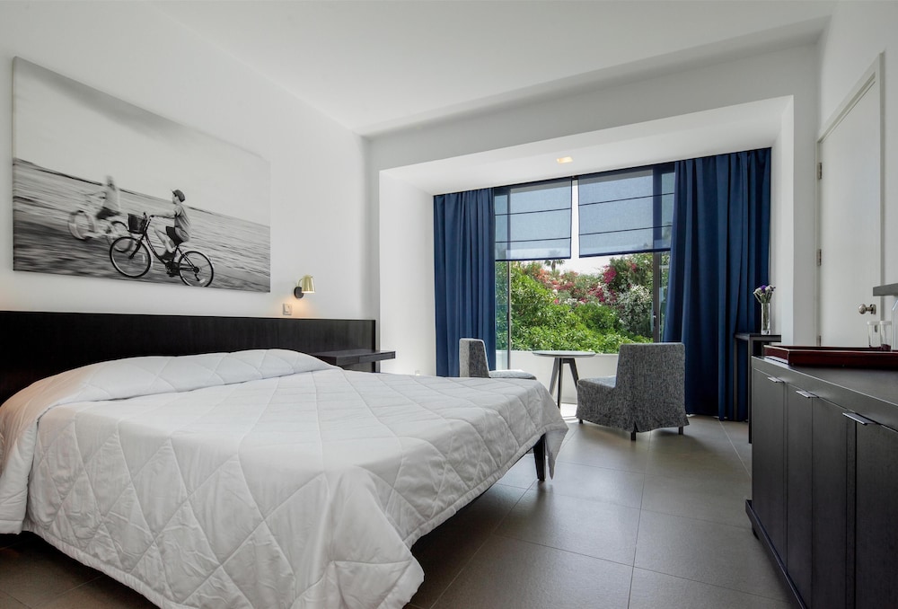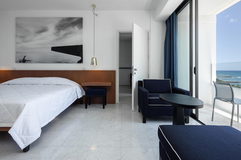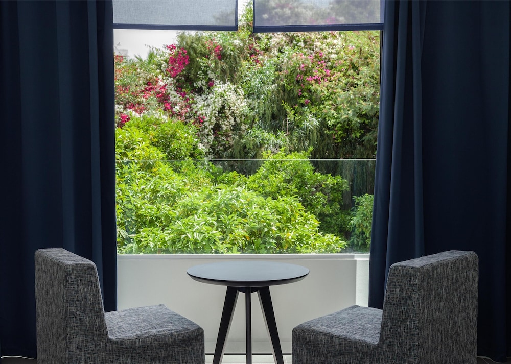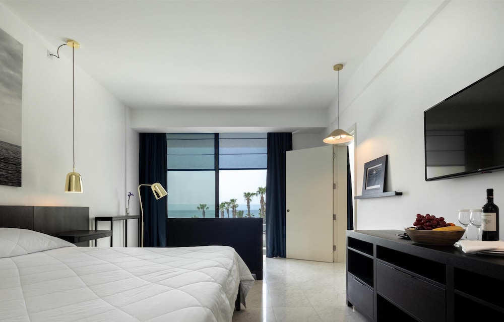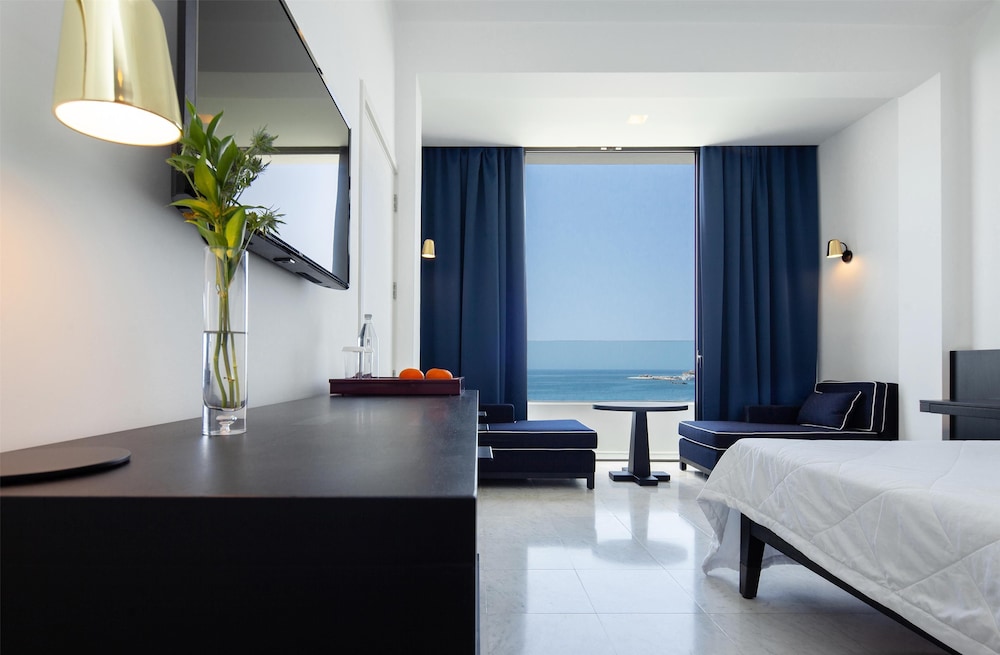 Velger du Almyra i Páfos som overnattingssted, bor du ved vannkanten, mindre enn 10 minutters gange fra Pafos havn og Alykes-stranden. Dette hotellet med familievennlig profil ligger 8,4 mi (13,5 km) unna Coral Bay Beach og 0,6 mi (0,9 km) unna Pafos arkeologiske park. Føl deg som hjemme i et av de 187 gjesterommene, som er individuelt dekorert og utstyrt med minibar og smart-TV. Du kan holde deg oppdatert med wi-fi (inkludert) på rommet, og underholdningen er sikret med parabol-TV. Badene har dusj, regndusjhode og designertoalettartikler. Rommet har safe og flaskevann (inkludert), samt telefon med lokalsamtaler (inkludert). Avstandene som vises er rundet av til nærmeste 0,1 kilometer.