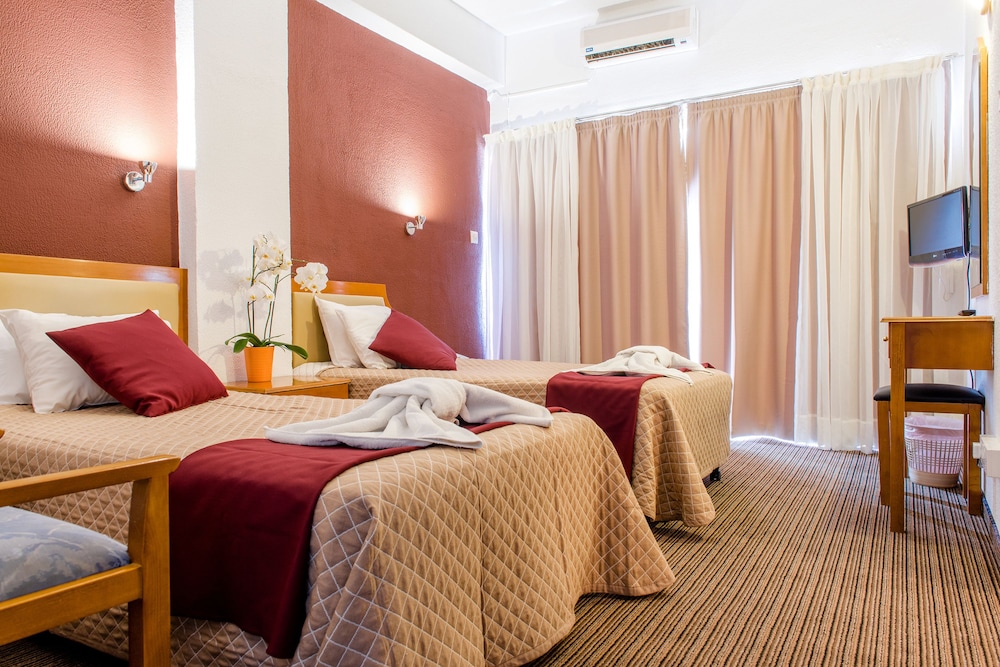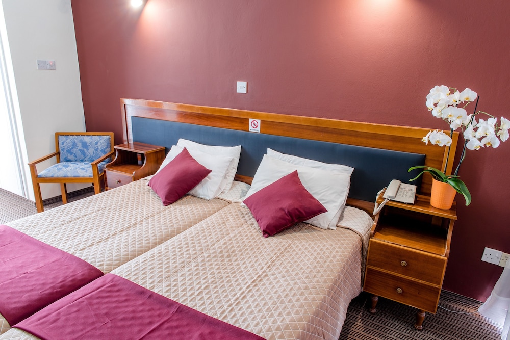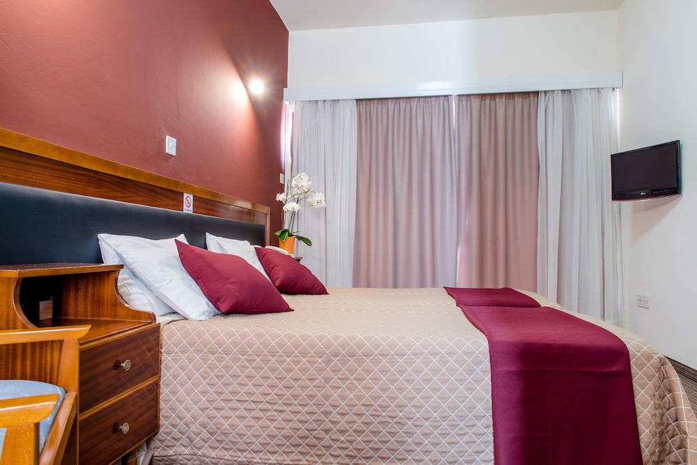 Velger du Kings Hotel for ditt opphold i Páfos, vil du være en 5 minutters kjøretur unna Pafos havn og Kings Avenue kjøpesenter. Dette hotellet ligger 7,6 mi (12,3 km) unna Coral Bay Beach og 0,5 mi (0,8 km) unna Kongenes graver. Overnatt i et av de 45 gjesterommene, som har Flatskjerm-TV. Du kan holde deg oppdatert med wi-fi (inkludert) på rommet, og underholdningen er sikret med digital-TV. Badene har kombinert dusj/badekar og hårføner (på forespørsel). Rommet har telefon, samt safe og skrivebord. Avstandene som vises er rundet av til nærmeste 0,1 kilometer.