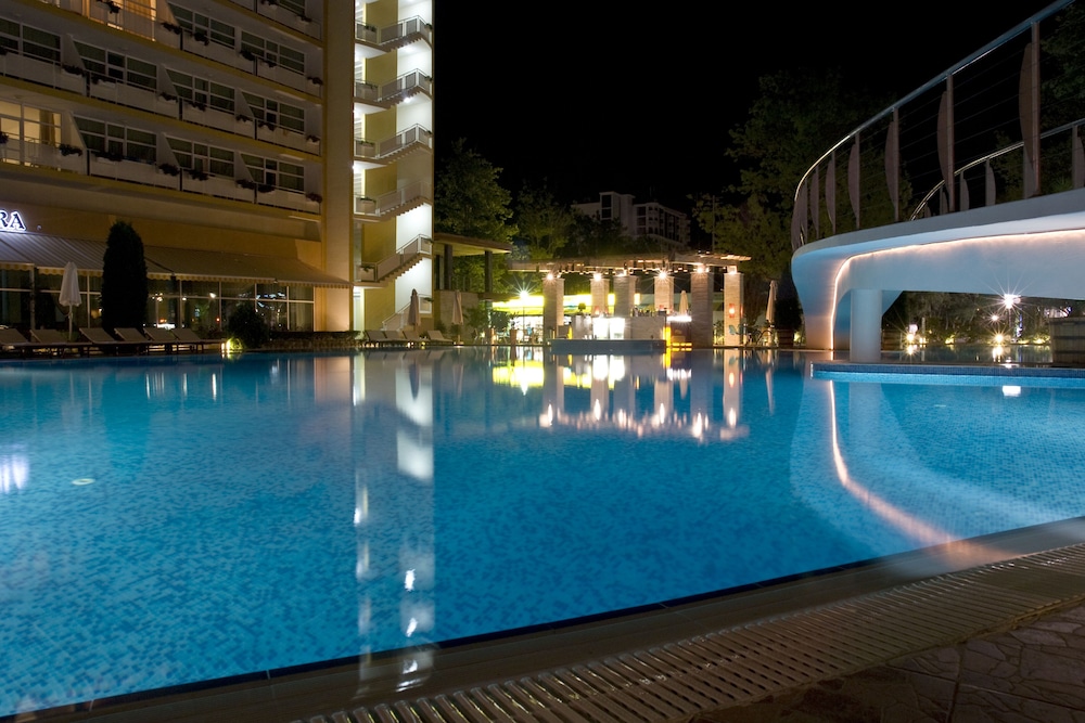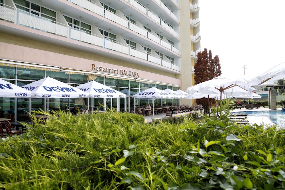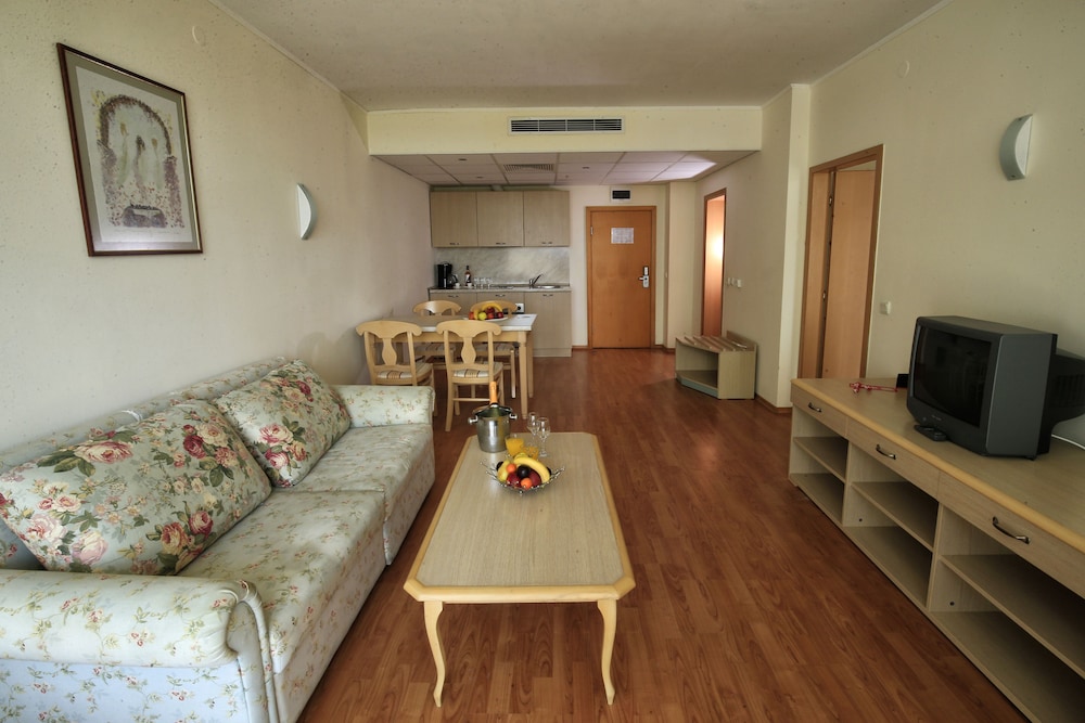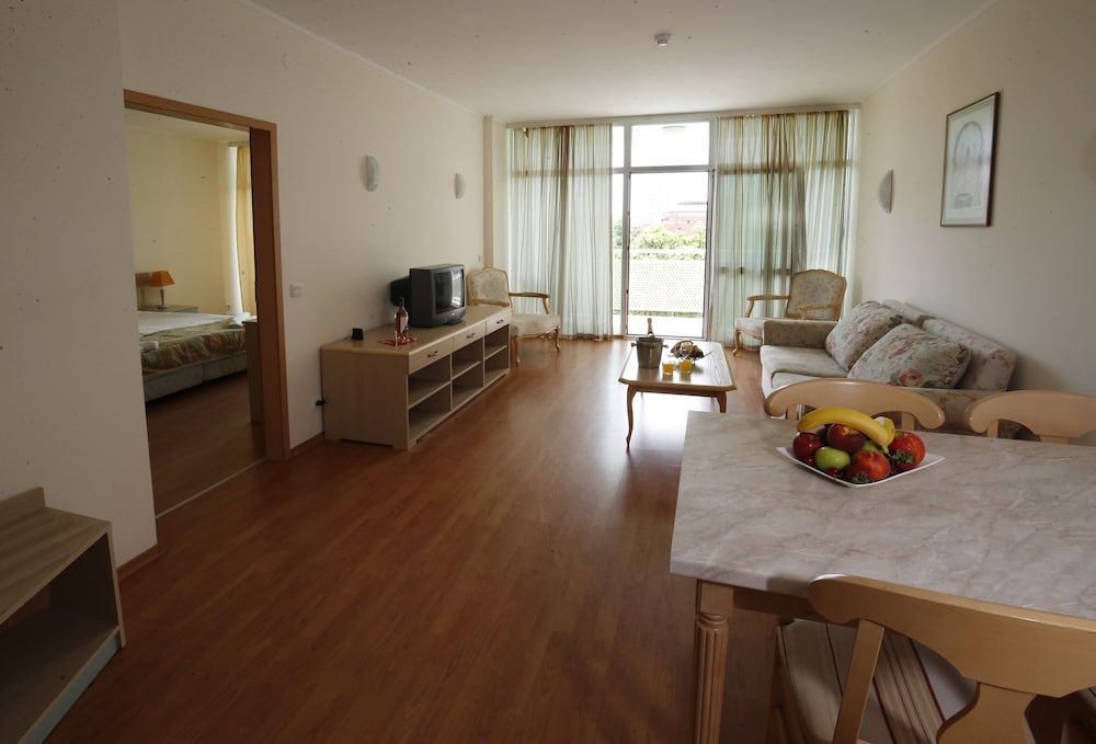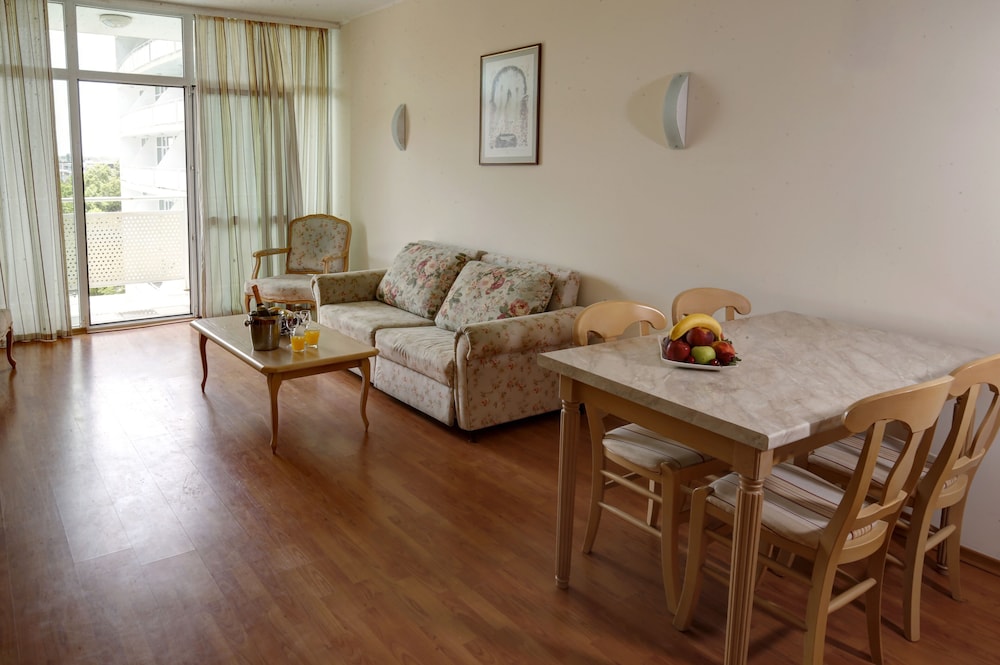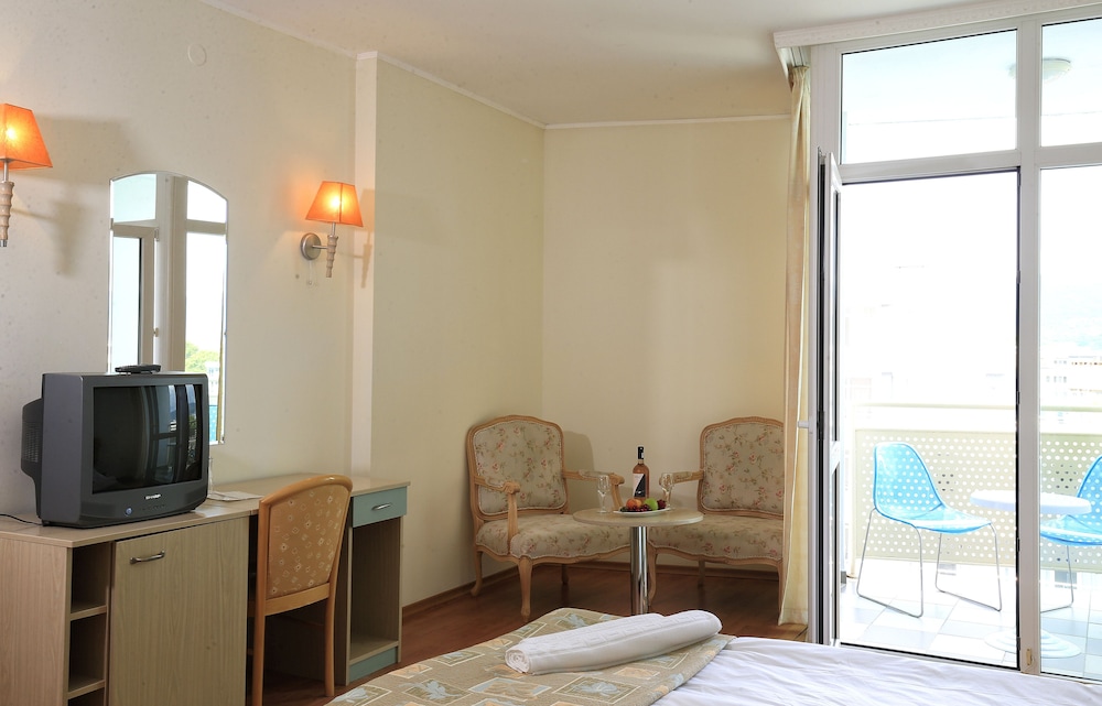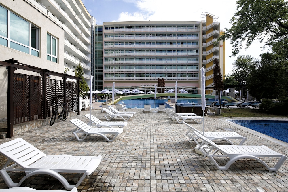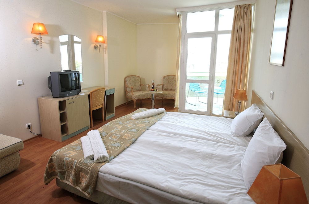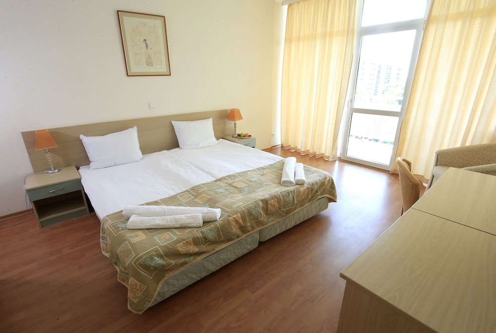 Velger du Grand Hotel Oasis som overnattingssted i Nessebar, er det bare en 5 minutters kjøretur til Sunny Beach og 9 minutter til Aqua Paradise. Dette hotellet med alt inkludert ligger 0,5 mi (0,9 km) unna Action vannpark og 0,7 mi (1,1 km) unna Platinum Casino. Føl deg som hjemme i et av de 130 aircondition-avkjølte gjesterommene. Du kan holde deg oppdatert med wi-fi (inkludert) på rommet, og underholdningen er sikret med kabel-TV. Badene har badekar eller dusj, toalettartikler (inkludert), og hårføner. Rommene har skrivebord og rengjøring tilbys daglig. Avstandene som vises er rundet av til nærmeste 0,1 kilometer.