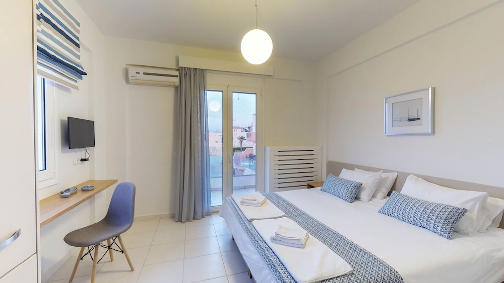 Når du har Lofos Village Chania i Khaniá som overnattingssted, bor du ved sjøen, kun 15 minutter å kjøre fra Agia Marina strand og Kalamaki Beach. Dette gjestehuset ligger 10,6 mi (17,1 km) unna Souda havn og 6,7 mi (10,8 km) unna Nea Khora strand. Føl deg som hjemme i et av de 9 gjesterommene, som er individuelt dekorert, og som har et kjøkken med kjøleskap og ovn. Rommene har egen møblert terrasse. Underholdningen er sikret med en flatskjerm-TV med kabel-TV, og wi-fi (inkludert) sørger for at du kan holde deg oppdatert. Rommene har mikrobølgeovn og kaffetrakter/tekoker, og rengjøring tilbys daglig. Avstandene som vises er rundet av til nærmeste 0,1 kilometer.