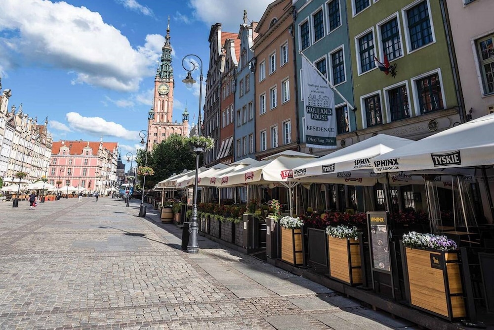 Holland House Residence Old Town ligger i hjertet av Gdańsk. Med et opphold her vil du være 15 minutters gange fra Det gamle rådhuset i Gdánsk og Det lange markedet. Dette hotellet boutique ligger 7,4 mi (11,9 km) unna Sopot strand og 0,1 mi (0,1 km) unna Neptuns fontene. Føl deg som hjemme i et av de 26 gjesterommene, som har minibar og Flatskjerm-TV. Rommet har seng med overmadrass. Du kan holde deg oppdatert med wi-fi (inkludert) på rommet, og underholdningen er sikret med parabol-TV. Rommene har privat bad med toalettartikler (inkludert) og hårføner. Avstandene som vises er rundet av til nærmeste 0,1 kilometer.