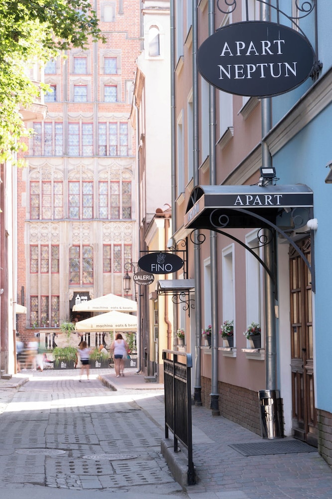 Dersom du velger Apart Neptun som ditt overnattingssted i Gdańsk vil du ha både Brama Zielona (Den grønne porten) og Mariakirken like rundt hjørnet. Dette hotellet ligger 0,8 mi (1,3 km) unna Forum Gdańsk og 1,3 mi (2,1 km) unna Den gylne porten. Overnatt i et av de 39 gjesterommene, som har LED-TV. Sengen har overmadrass og sengetøy av topp kvalitet. Du kan holde deg oppdatert med inkludert kablet og trådløst internett, og underholdningen er sikret med kabel-TV. Rommene har privat bad med toalettartikler (inkludert) og hårføner. Avstandene som vises er rundet av til nærmeste 0,1 kilometer.