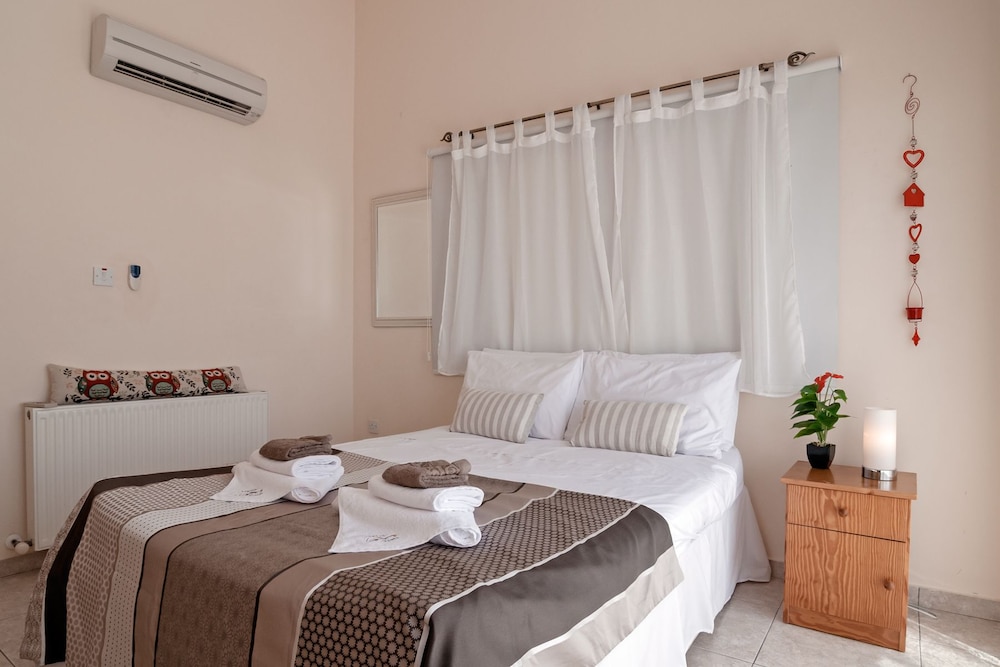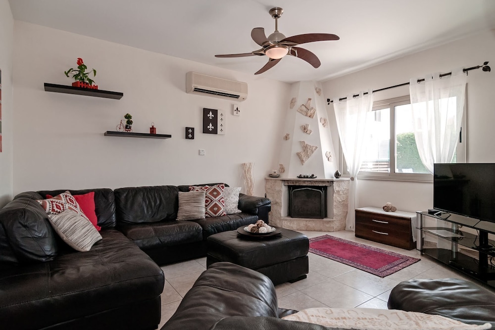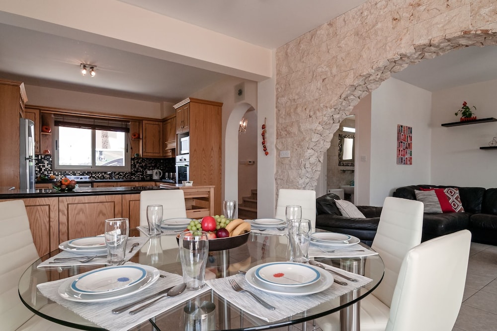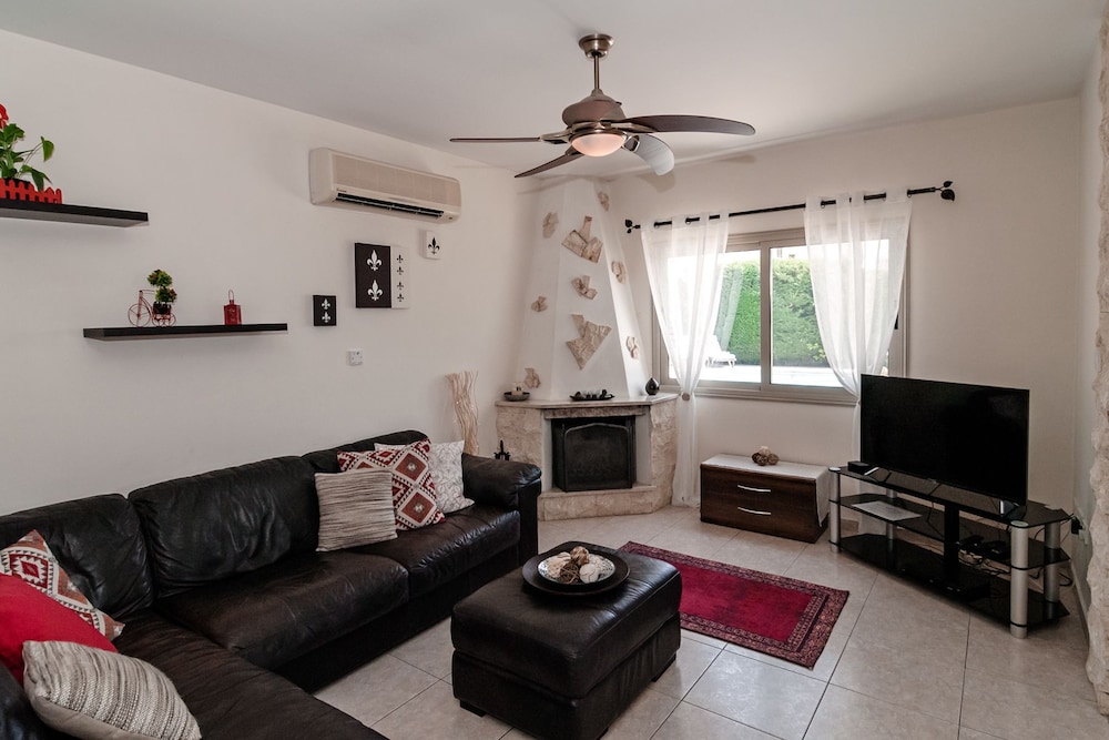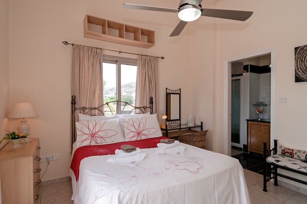 Velger du denne villaen i Pegeia (Peyia by) som overnattingssted, vil du ha mindre enn 10 minutter å kjøre til Coral Bay Beach og Coral Bay Kartingsenter. Denne villaen ligger 9,3 mi (14,9 km) unna Pafos havn og 17,3 mi (27,8 km) unna Latchi-stranden. Føl deg som hjemme i denne villaen, som er utstyrt med airconditioning, privat basseng og Flatskjerm-TV. Et kjøkken er utstyrt med kjøleskap, stekeovn og mikrobølgeovn. Wi-fi (inkludert) gjør at du kan holde deg oppdatert. Bekvemmelighetene omfatter kaffetraktere/tekokere og strykejern/-brett, og du kan også be om barneseng/babyseng (mot et tillegg). Avstandene som vises er rundet av til nærmeste 0,1 kilometer.