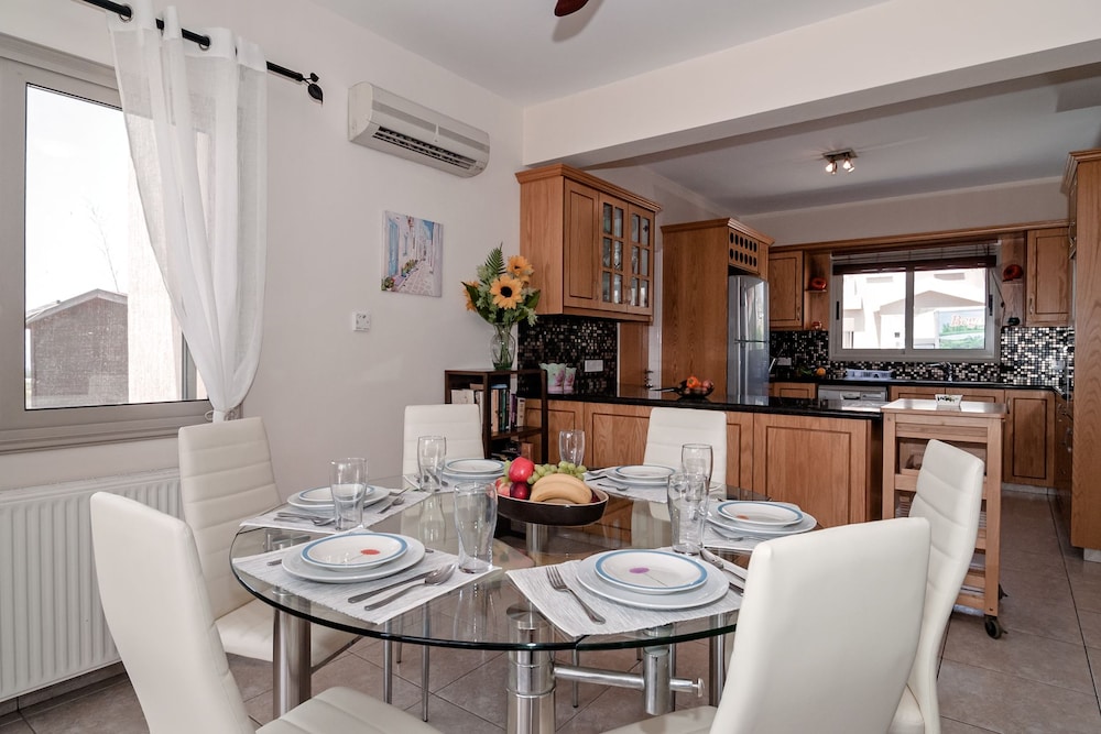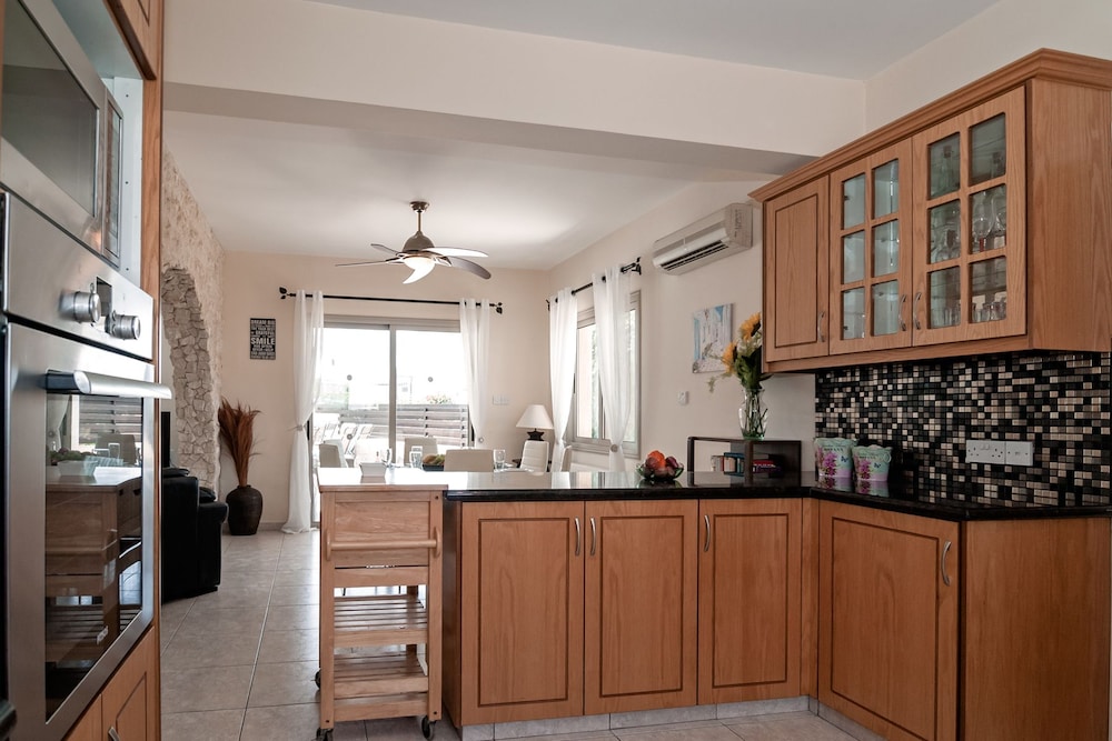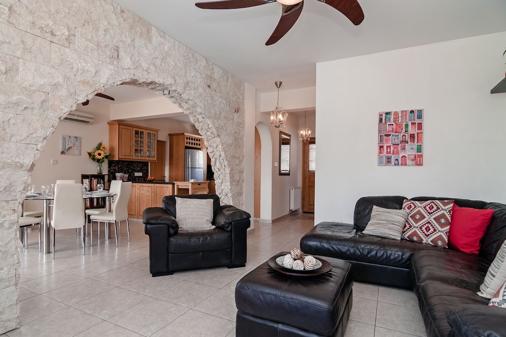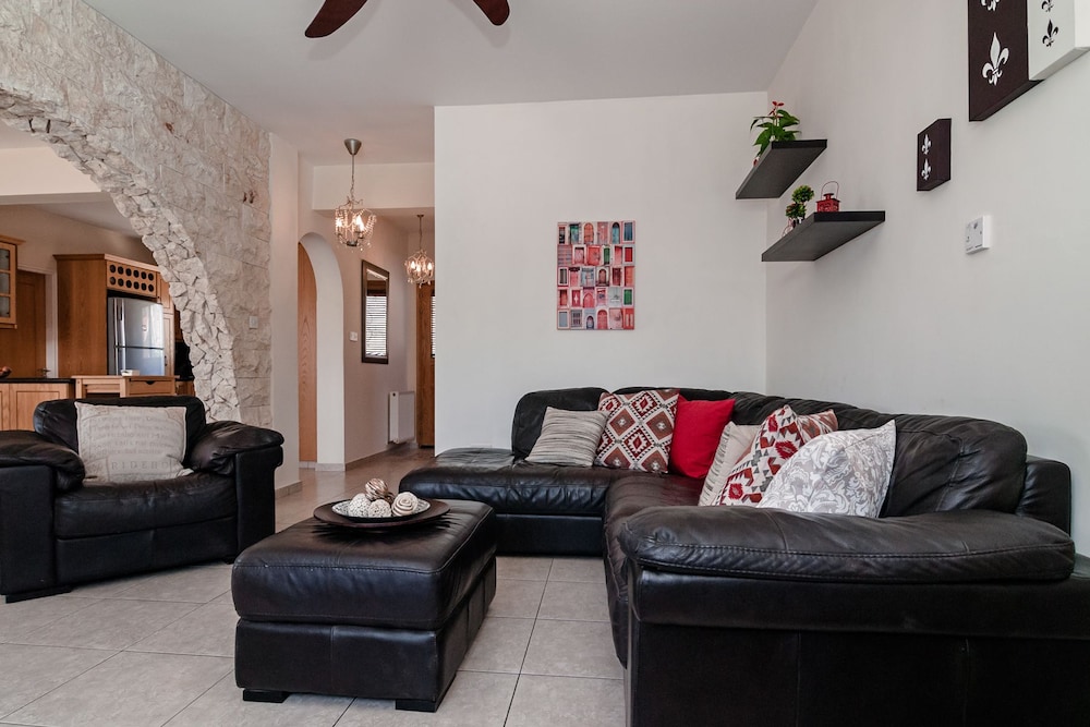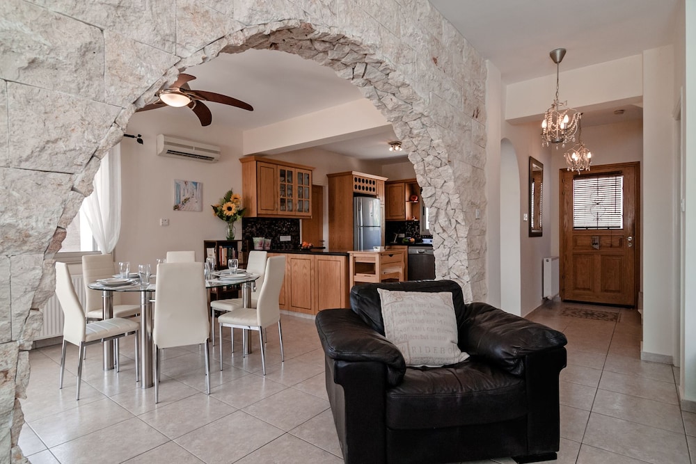 Velger du denne villaen i Pegeia (Peyia by) som overnattingssted, vil du ha mindre enn 10 minutter å kjøre til Coral Bay Beach og Coral Bay Kartingsenter. Denne villaen ligger 9,3 mi (14,9 km) unna Pafos havn og 17,3 mi (27,8 km) unna Latchi-stranden. Føl deg som hjemme i denne villaen, som er utstyrt med airconditioning, privat basseng og Flatskjerm-TV. Et kjøkken er utstyrt med kjøleskap, stekeovn og mikrobølgeovn. Wi-fi (inkludert) gjør at du kan holde deg oppdatert. Bekvemmelighetene omfatter kaffetraktere/tekokere og strykejern/-brett, og du kan også be om barneseng/babyseng (mot et tillegg). Avstandene som vises er rundet av til nærmeste 0,1 kilometer.