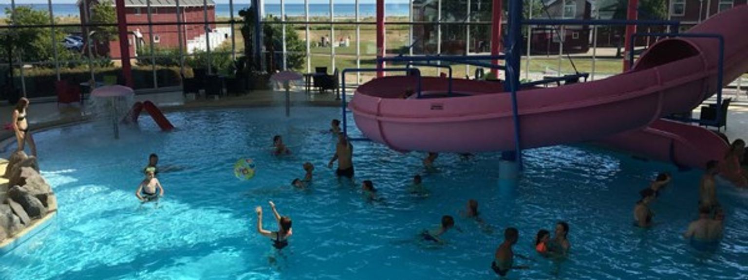 Tropisk innendørs badeland. Perfekt beliggenhet ved stranden med mange aktiviteter.