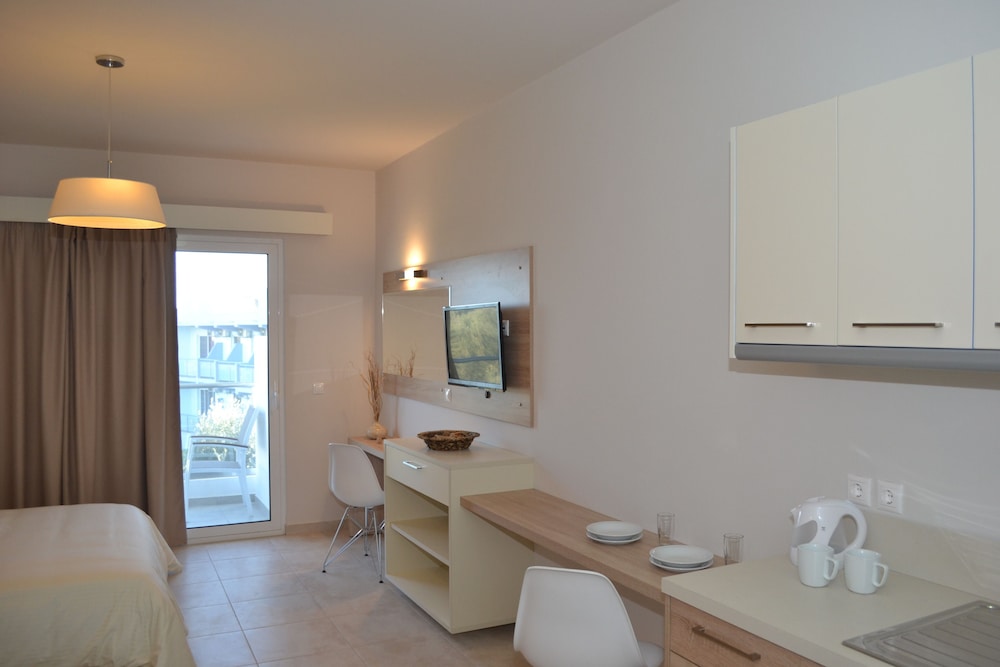 Når du har Argiro Village i Rhodos som overnattingssted, bor du nær golfbanen, kun 4 minutter å kjøre fra Afandou-stranden og 8 minutter fra Faliraki strand. Dette leilighetshotellet med familievennlig profil ligger 12,7 mi (20,4 km) unna Rodos havn og 5,5 mi (8,9 km) unna Faliraki badeland. Føl deg som hjemme på et av de 70 gjesterommene, som har air conditioning, og som har et tekjøkken med kjøleskap og komfyrtopp. Rommene har egen møblert balkong eller terrasse. Underholdningen er sikret med en plasma-TV med parabol-TV, og wi-fi (inkludert) sørger for at du kan holde deg oppdatert. Rommene har vannkoker og rengjøring tilbys daglig. barneseng/babyseng (inkludert) kan fås på forespørsel. Avstandene som vises er rundet av til nærmeste 0,1 kilometer.