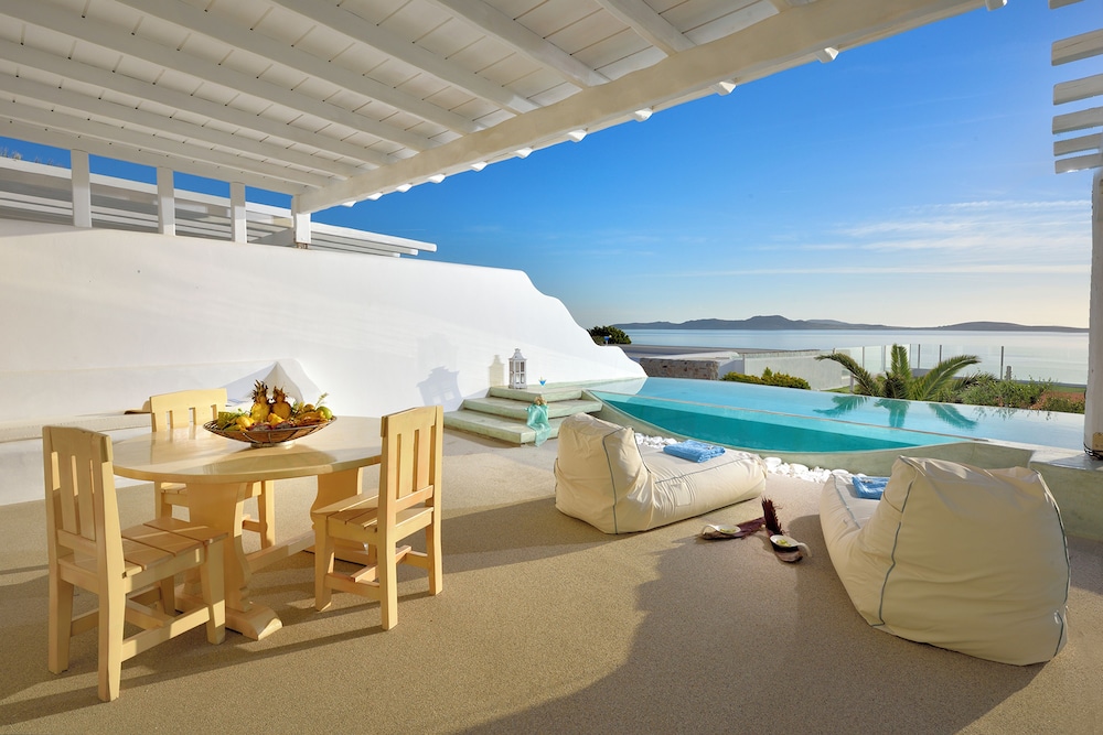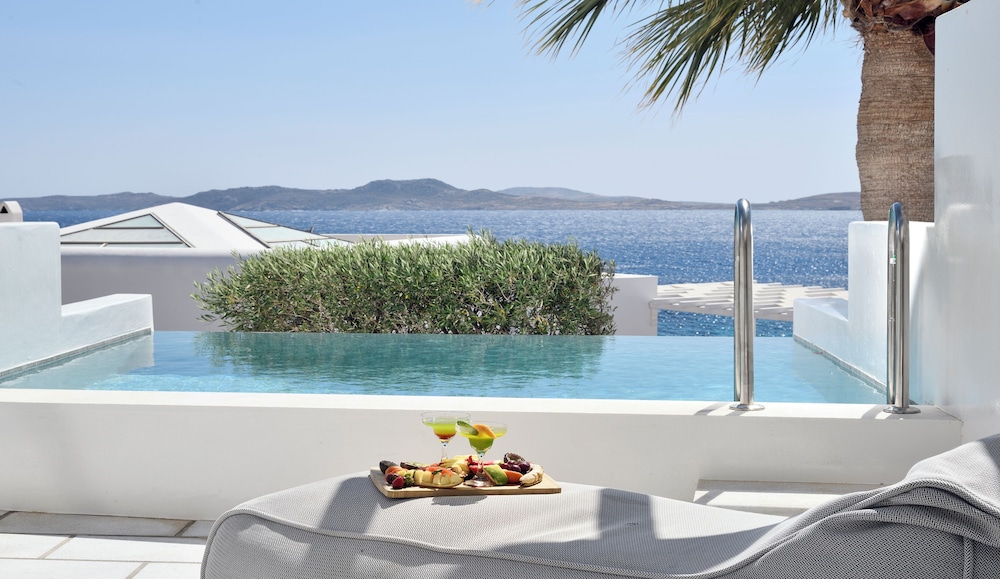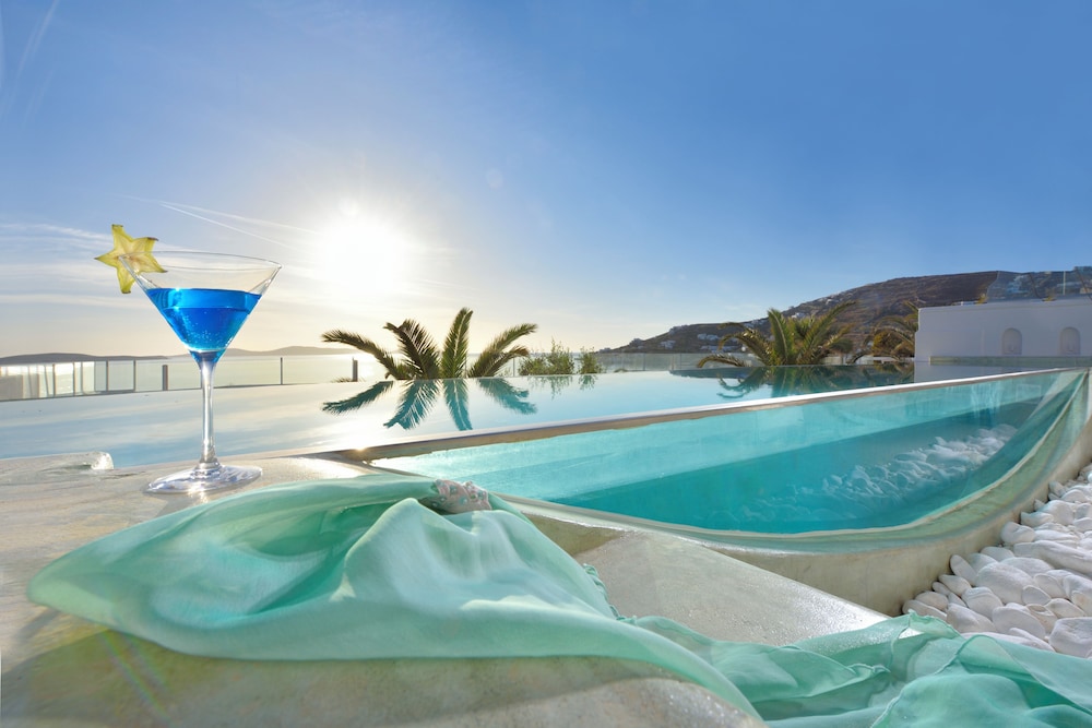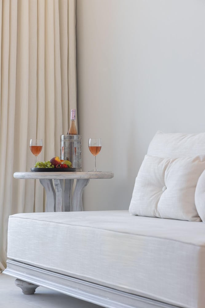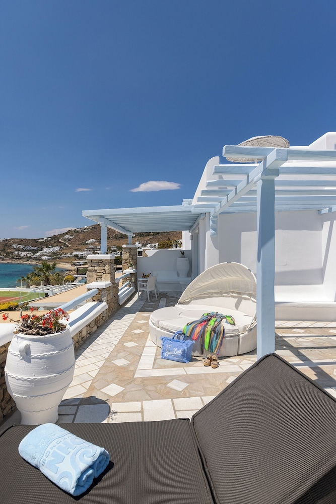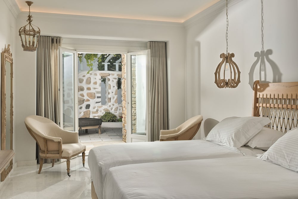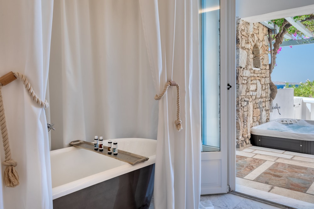 Når du har Saint John Hotel Villas & Spa i Mykonos som overnattingssted, bor du nær flyplassen, kun 10 minutter å kjøre fra Mykonos gamle havn og Vindmøllene i Mykonos. Dette hotellet ved stranden ligger 6,1 mi (9,8 km) unna Mykonos nye havn og 1,3 mi (2,1 km) unna Ornos-stranden. Føl deg som hjemme i et av de 153 aircondition-avkjølte gjesterommene som også har minibar og LCD-TV. Du kan holde deg oppdatert med inkludert kablet og trådløst internett, og underholdningen er sikret med parabol-TV. Badene har badekar eller dusj, toalettartikler (inkludert), og hårføner. Rommet har telefon, samt safe og kaffetrakter/tekoker. Avstandene som vises er rundet av til nærmeste 0,1 kilometer.