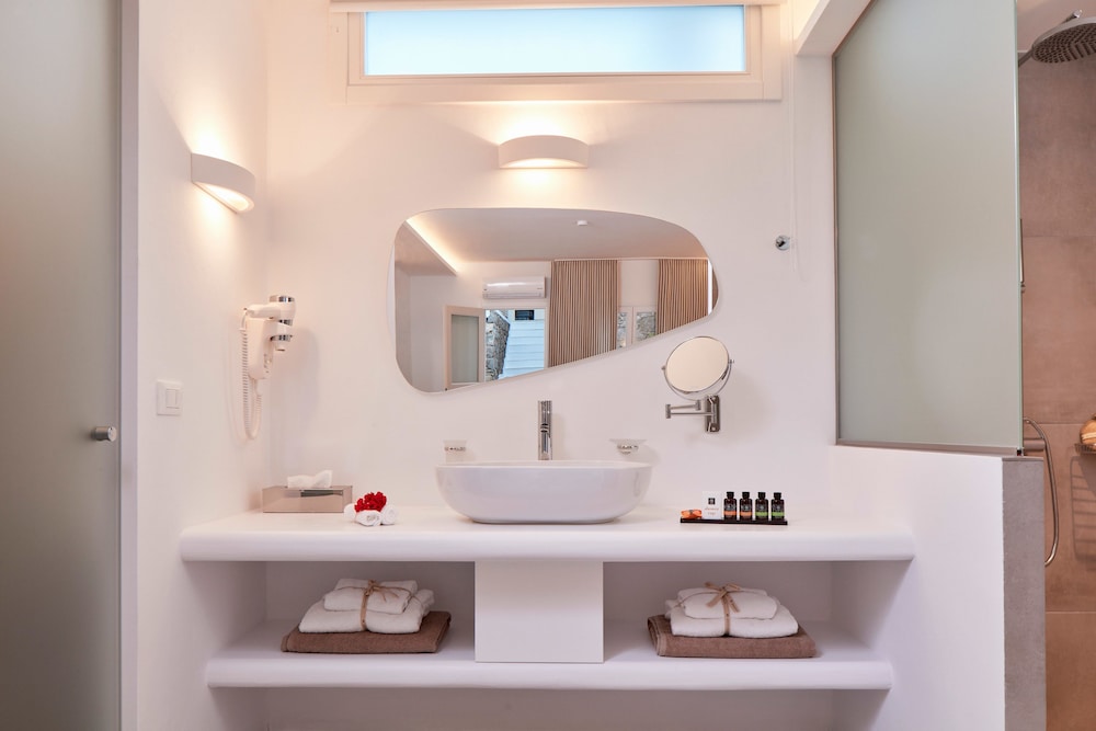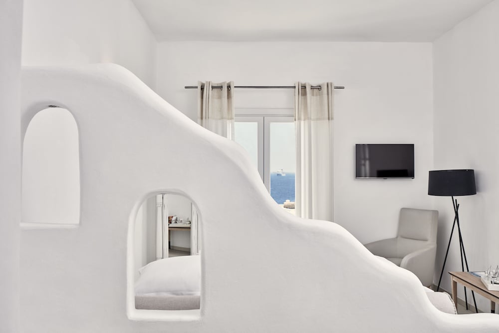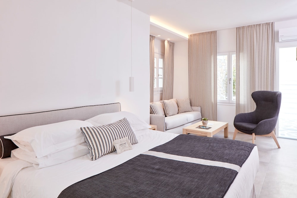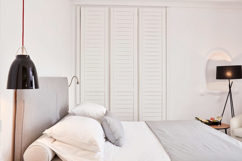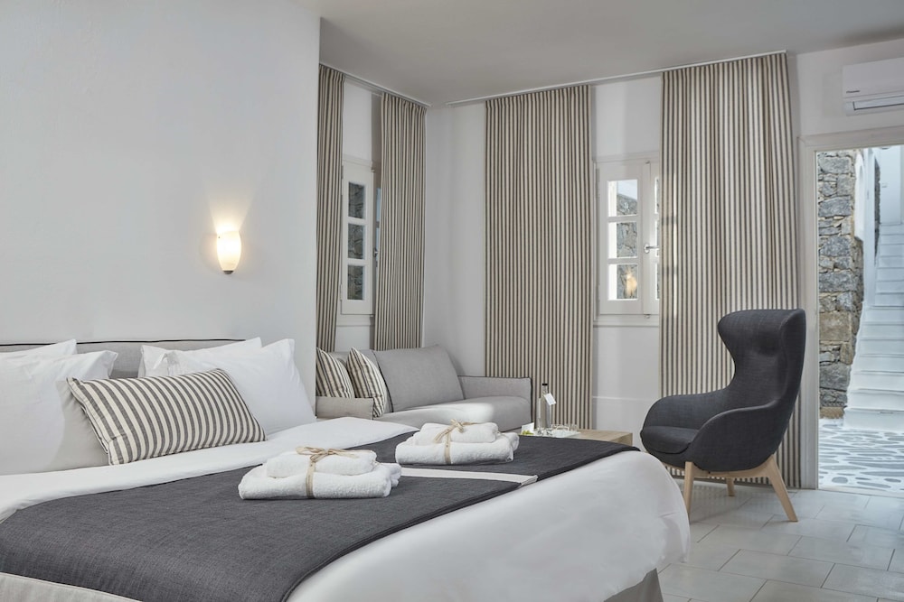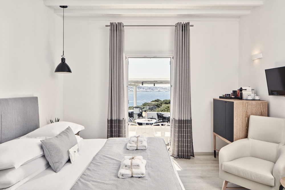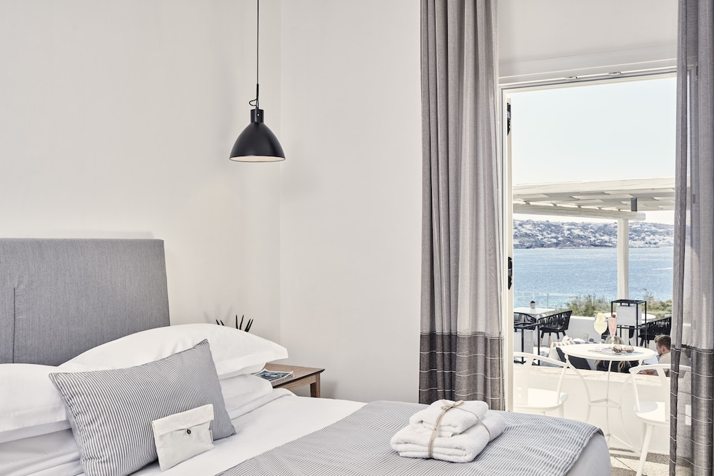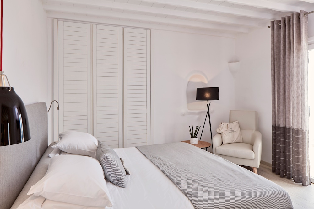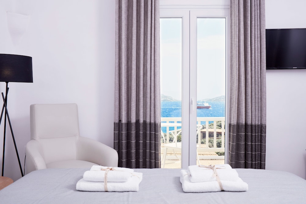 Dersom du velger Mykonos Princess Hotel når du skal besøke Mykonos, er du mindre enn en 5 minutters kjøretur unna Mykonos gamle havn og Mykonos nye havn. Dette hotellet ved stranden ligger 2,8 mi (4,4 km) unna Vindmøllene i Mykonos og 4,3 mi (7 km) unna Ornos-stranden. Føl deg som hjemme i et av de 39 aircondition-avkjølte gjesterommene som også har minibar og LCD-TV. Du kan holde deg oppdatert med wi-fi (inkludert) på rommet. Badene har dusj, toalettartikler (inkludert), og hårføner. Rommet har telefon, samt safe og sengeoppredning. Avstandene som vises er rundet av til nærmeste 0,1 kilometer.