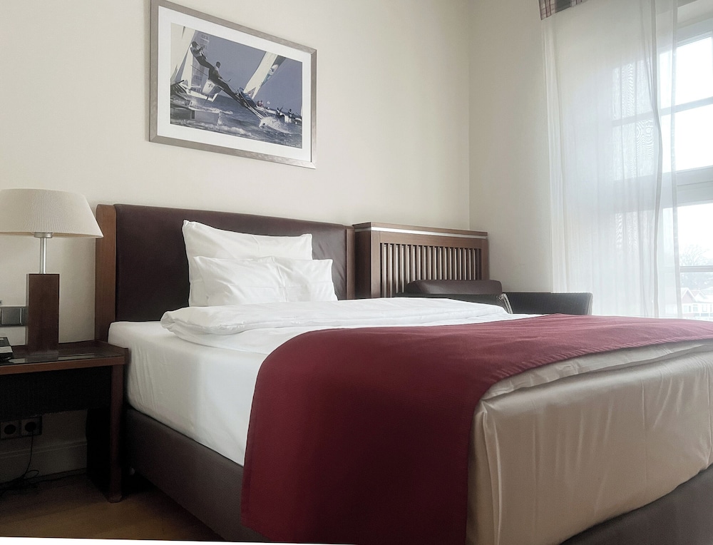 Velger du ATLANTIC Grand Hotel Travemünde i Lübeck (Travemünde) som overnattingssted, vil du ha mindre enn 10 minutter å kjøre til Travemuende fergehavn og Travemuende gamle fyrtårn. Dette hotellet ved stranden ligger 0,8 mi (1,2 km) unna Hundestrand og 1,4 mi (2,3 km) unna Seebad museum. Føl deg som hjemme i et av de 83 gjesterommene, som er individuelt innredet og utstyrt med espressomaskin og Flatskjerm-TV. Du kan holde deg oppdatert med wi-fi (inkludert) på rommet, og underholdningen er sikret med kabel-TV. Rommene har privat bad med kombinert dusj/badekar, regndusjhode og toalettartikler (inkludert). Rommene har safe og skrivebord, og rengjøring tilbys daglig. Avstandene som vises er rundet av til nærmeste 0,1 kilometer.