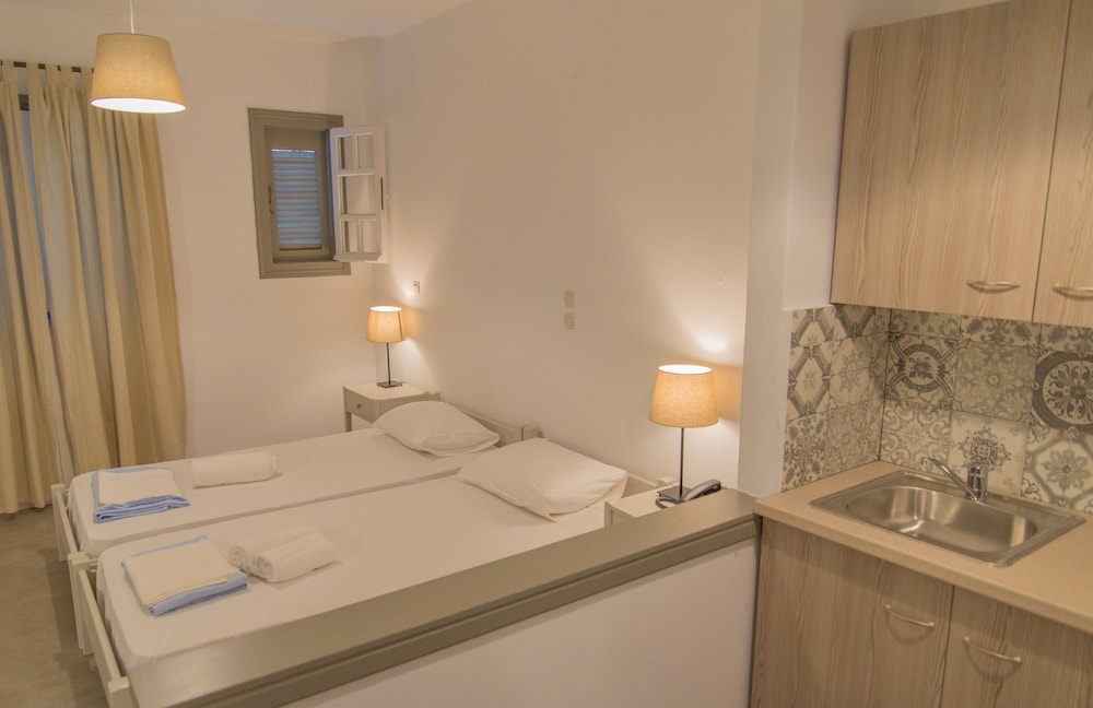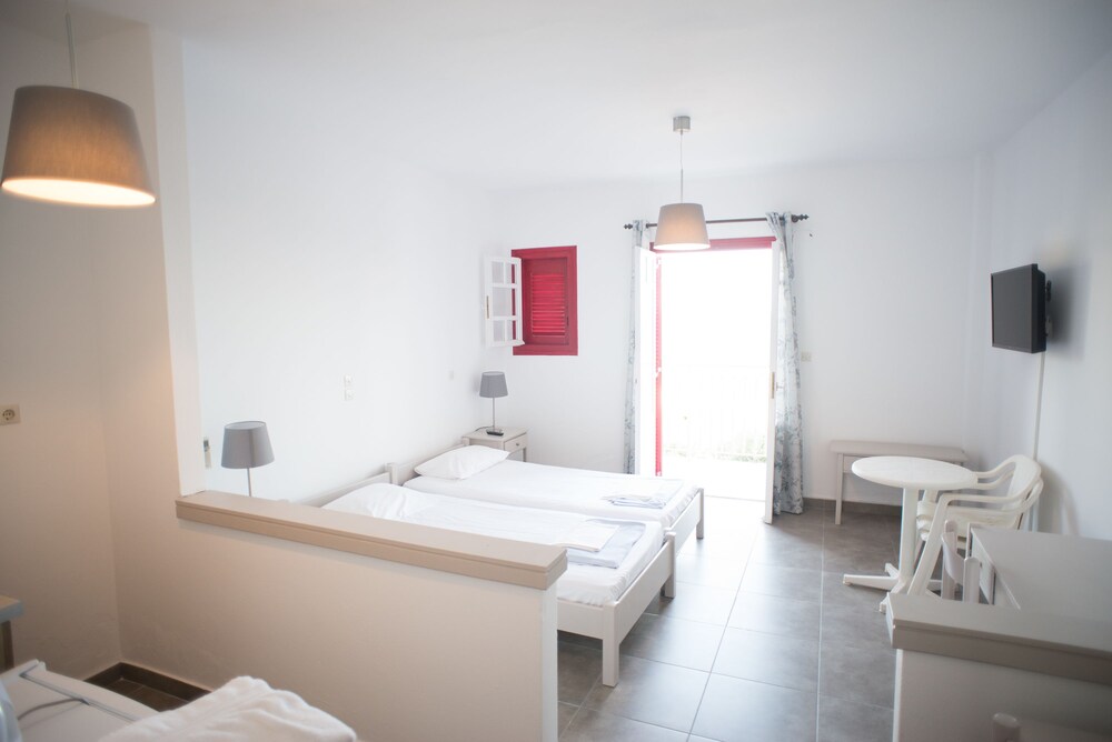 Velger du Ostria Hotel som overnattingssted i Andros, er du bare 15 minutters gange unna både Gavrio havn og St. Peter-stranden. Dette hotellet ved stranden ligger 1,4 mi (2,2 km) unna Chrysí Ammos og 1,6 mi (2,5 km) unna Kyprí. Føl deg som hjemme i et av de 54 aircondition-avkjølte gjesterommene som også har kjøleskap og Flatskjerm-TV. Rommene har egen balkong. Du kan holde deg oppdatert med wi-fi (inkludert) på rommet. Rommene har privat bad med dusj, toalettartikler (inkludert) og hårføner. Avstandene som vises er rundet av til nærmeste 0,1 kilometer.