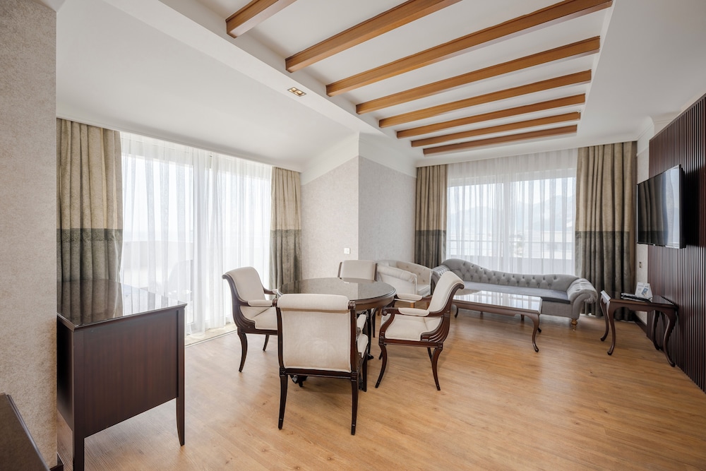Når du har Porto Bello Hotel Resort & Spa i Konyaalti som overnattingssted, bor du ved sjøen, kun 4 minutter å kjøre fra Konyaalti strand og 6 minutter fra Konyaalti strandpark. Dette hotellet med alt inkludert ligger 16,1 mi (25,9 km) unna Lara strand og 6 mi (9,7 km) unna MarkAntalya kjøpesenter. Overnatt i et av de 346 gjesterommene, som har LCD-TV. Du kan holde deg oppdatert med wi-fi (inkludert) på rommet, og underholdningen er sikret med parabol-TV. Rommene har privat bad med badekar eller dusj, toalettartikler (inkludert) og hårføner. Rommene har safe og skrivebord, og rengjøring tilbys daglig. Avstandene som vises er rundet av til nærmeste 0,1 kilometer.