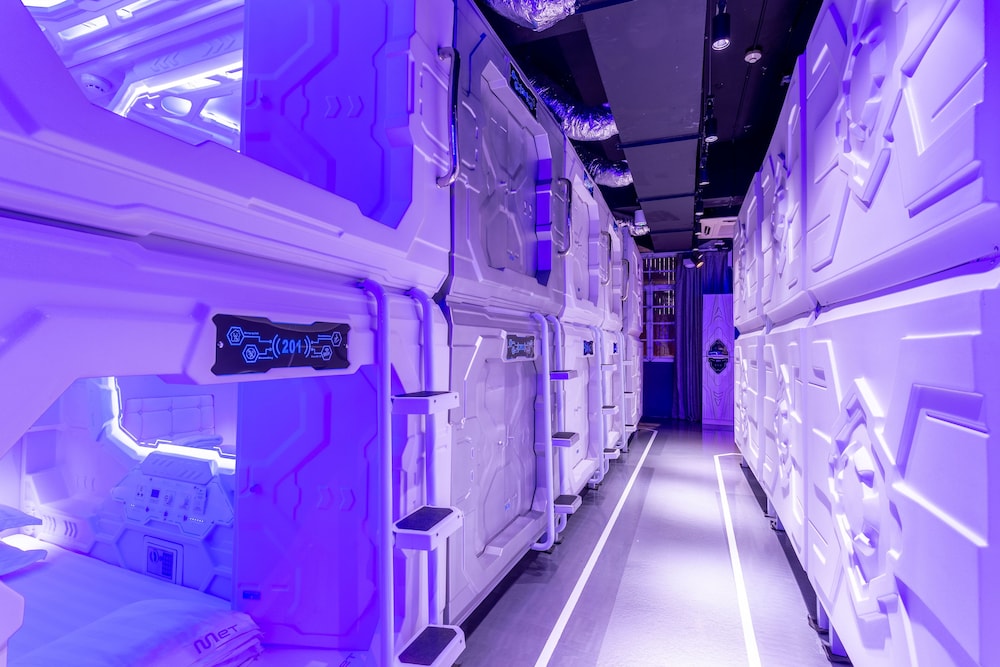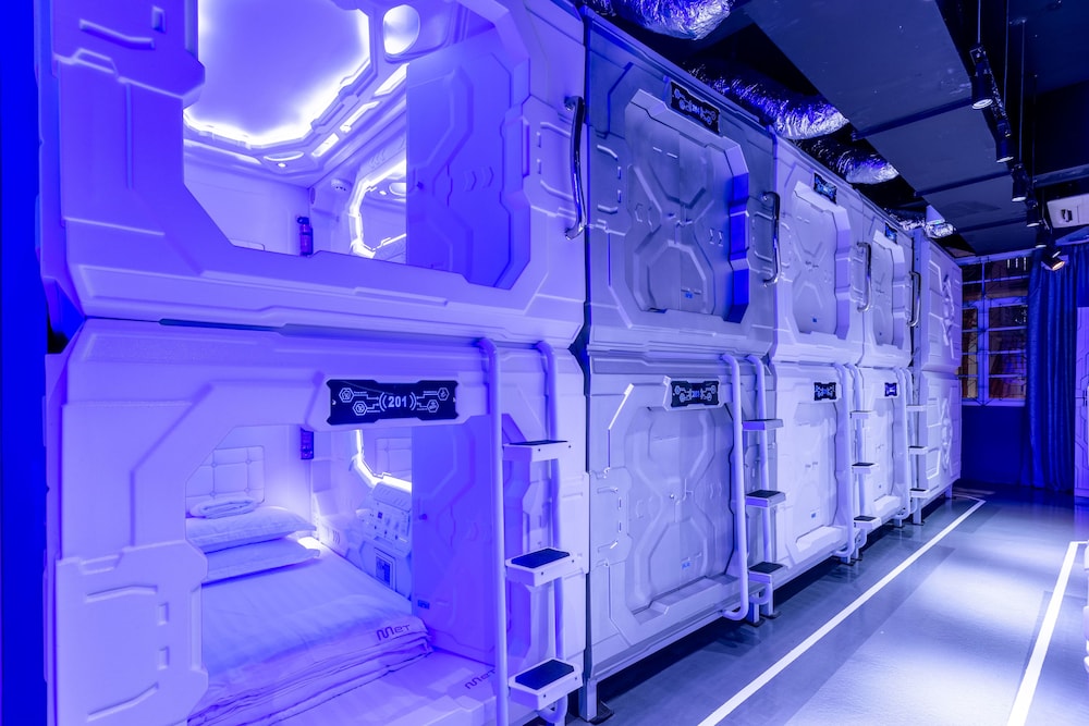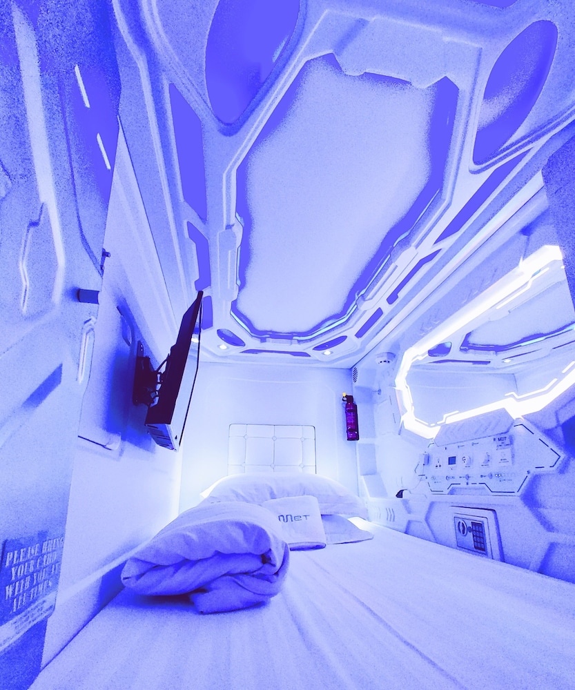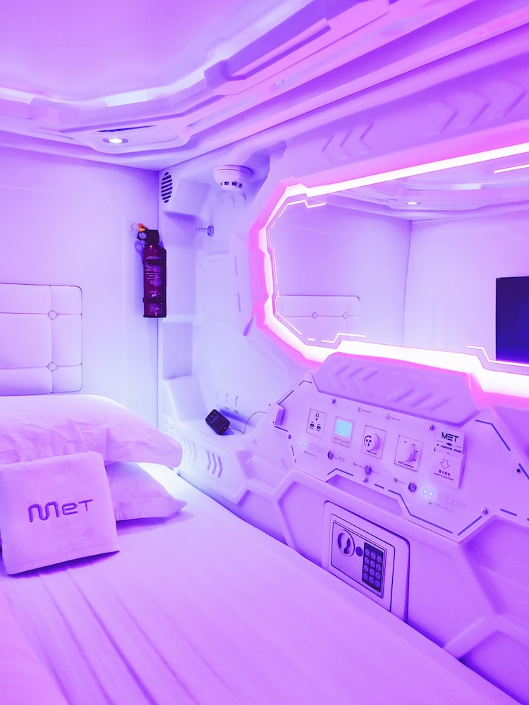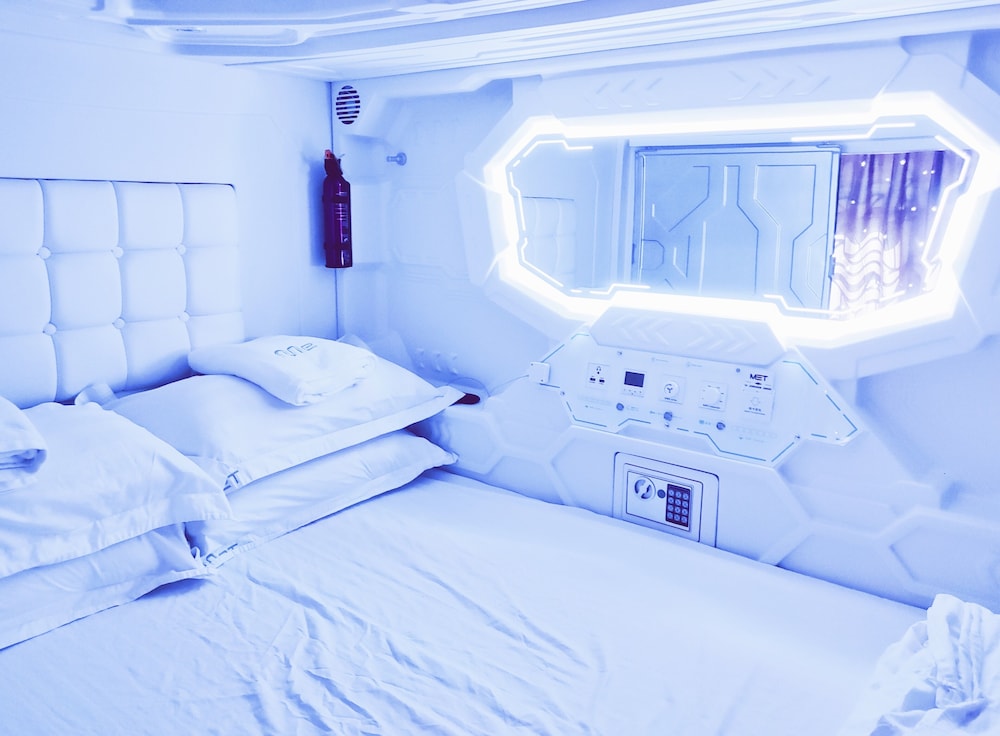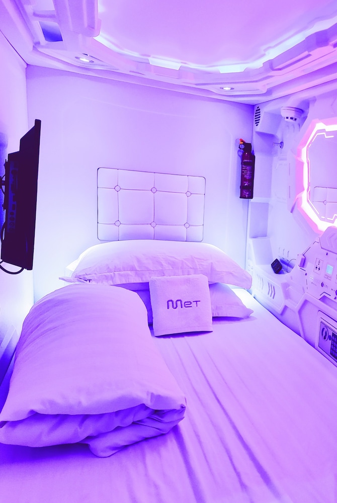 Velger du Met A Space Pod @ Arab Street som ditt overnattingssted i Singapore, vil du ha Bugis Street handleområde like rundt hjørnet og bare 11 minutter å gå til Suntec City. Dette hotellet ligger 1,4 mi (2,2 km) unna Gardens by the Bay og 1,6 mi (2,6 km) unna Marina Bay Sands Skypark. Føl deg som hjemme i et av de 46 aircondition-avkjølte gjesterommene. Du kan holde deg oppdatert med wi-fi (inkludert) på rommet, og underholdningen er sikret med kabel-TV. Badene har dusj, regndusjhode og hårføner. Rommene har safe og skrivebord, og rengjøring tilbys etter avtale. Avstandene som vises er rundet av til nærmeste 0,1 kilometer.