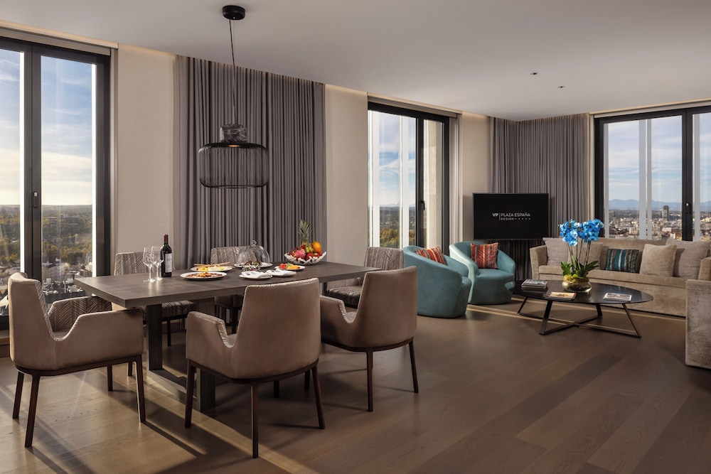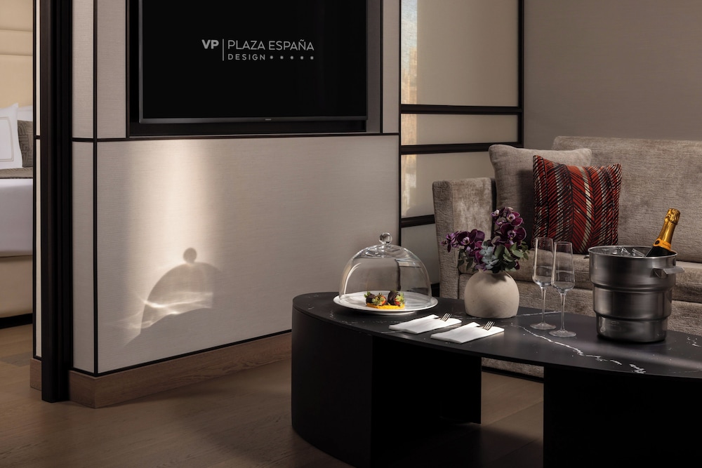 Dersom du velger VP Plaza España Design i Madrid, bor du like ved Gran Via og mindre enn 10 minutter fra Det Kongelige Palass i Madrid til fots. Dette hotellet i luksuriøs stil ligger 1,6 mi (2,6 km) unna Nasjonalmuseet Prado og 1,7 mi (2,7 km) unna Plaza Mayor. Føl deg som hjemme i et av de 214 gjesterommene, som har minibar og Flatskjerm-TV. Sengen har overmadrass, dundyner og sengetøy av topp kvalitet. Du kan holde deg oppdatert med wi-fi (inkludert) på rommet, og underholdningen er sikret med digital-TV. Badene har kombinert dusj/badekar, bideer, og hårføner. Avstandene som vises er rundet av til nærmeste 0,1 kilometer.