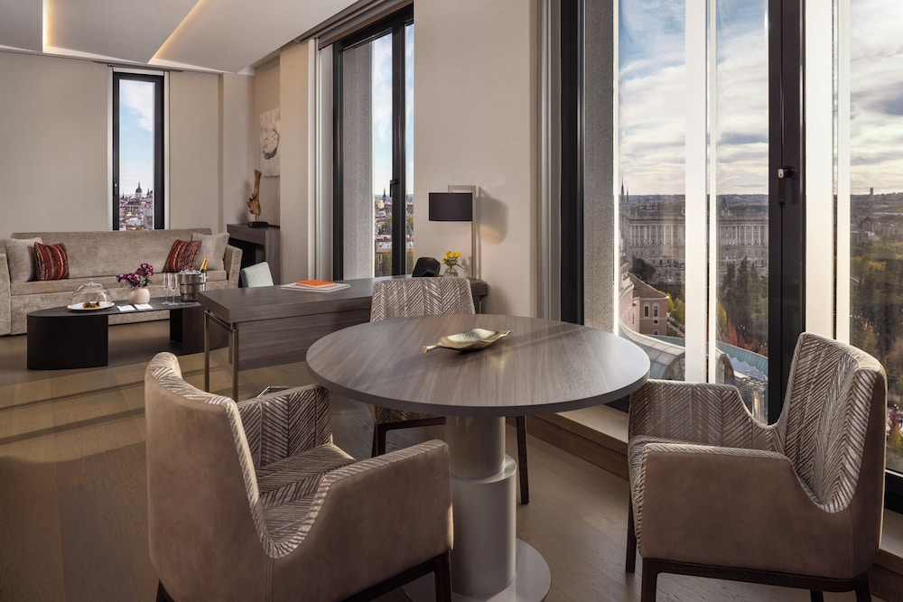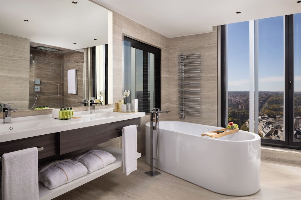 Gjester har tilgang til blant annet et forretningssenter, limousin-/privatbiltjenester og renseri-/vaskeritjenester. Planlegger du en event i Madrid? Som en av dette hotellet sine gjester tilbys du møte- og konferanserom på opp til 1400 kvadratmeter, blant annet konferanserom og møterom. Gjestene tilbys flyplasstransport døgnet rundt, mot et tillegg, og ubetjent parkering (mot et tillegg) er tilgjengelig i nærheten. Skjem bort deg selv på stedets spa, hvor du kan nyte massasjer, kroppsbehandlinger og ansiktsbehandlinger. Her har du tilgang til blant annet et døgnåpent treningssenter og et sesongbasert utendørsbasseng. Dette hotellet tilbyr også wi-fi (inkludert), concierge-tjenester og barnepass (mot betaling). Smak på middelhavsretter på Ginkgo Sky Bar, en av dette hotellets 2 restauranter, eller bli på rommet og benytt deg av romservice. Stedet har en bar/lounge hvor du kan slukke tørsten med din yndlingsdrink. Frokostbuffé serveres fra kl. 07.00 til kl. 10.30 på hverdagene og fra kl. 07.30 til kl. 11.00 i helgene, mot et tillegg. LOCALIZE- Pris for frokostbuffé: ca. EUR 35 for voksne og EUR 35 for barn