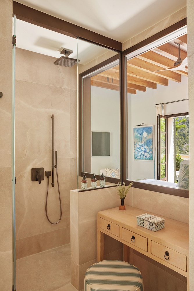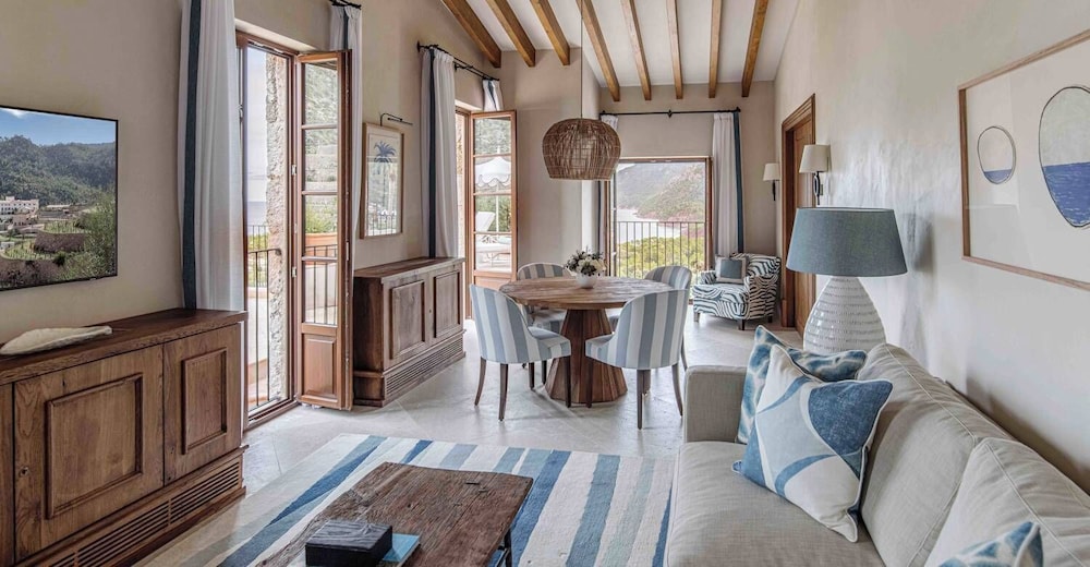 Dersom du velger Son Bunyola Hotel & Villas når du skal besøke Banyalbufar, bor duved sjøen samtidig som du er 17,1 mi (27,6 km) unna Palma de Mallorca havn og 18,4 mi (29,6 km) unna Puerto Portals marina. Dette hotellet med spa ligger 14,3 mi (23,1 km) unna Sankt Maria-katedralen i Palma og 17,8 mi (28,7 km) unna Cala Mayor strand. Føl deg som hjemme i et av de 30 gjesterommene, som også har minibar (inkludert) og espressomaskin. Sengen har overmadrass, dundyner og sengetøy i egyptisk bomull. Underholdningen er sikret med en 50-tommers smart-TV med digital-TV, og wi-fi (inkludert) gjør at du kan holde deg oppdatert. Rommene har privat bad med kombinert dusj/badekar, designertoalettartikler og hårføner. Avstandene som vises er rundet av til nærmeste 0,1 kilometer.