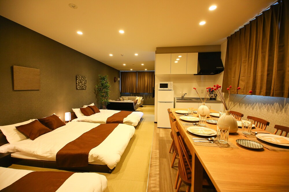 Velger du denne leiligheten som overnattingssted i Beppu, vil du ha mindre enn 5 minutter å kjøre til både Takegawara Onsen og Beppu Tower. Denne leiligheten ligger 4,8 mi (7,8 km) unna Helveteskulpene i Beppu og 9,2 mi (14,7 km) unna Kijima Kogen park. Føl deg som hjemme i denne leiligheten, som er utstyrt med airconditioning og et kjøkken med kjøleskap og komfyrtopp. Bekvemmelighetene omfatter separat sitteområde og mikrobølgeovn. Avstandene som vises er rundet av til nærmeste 0,1 kilometer.