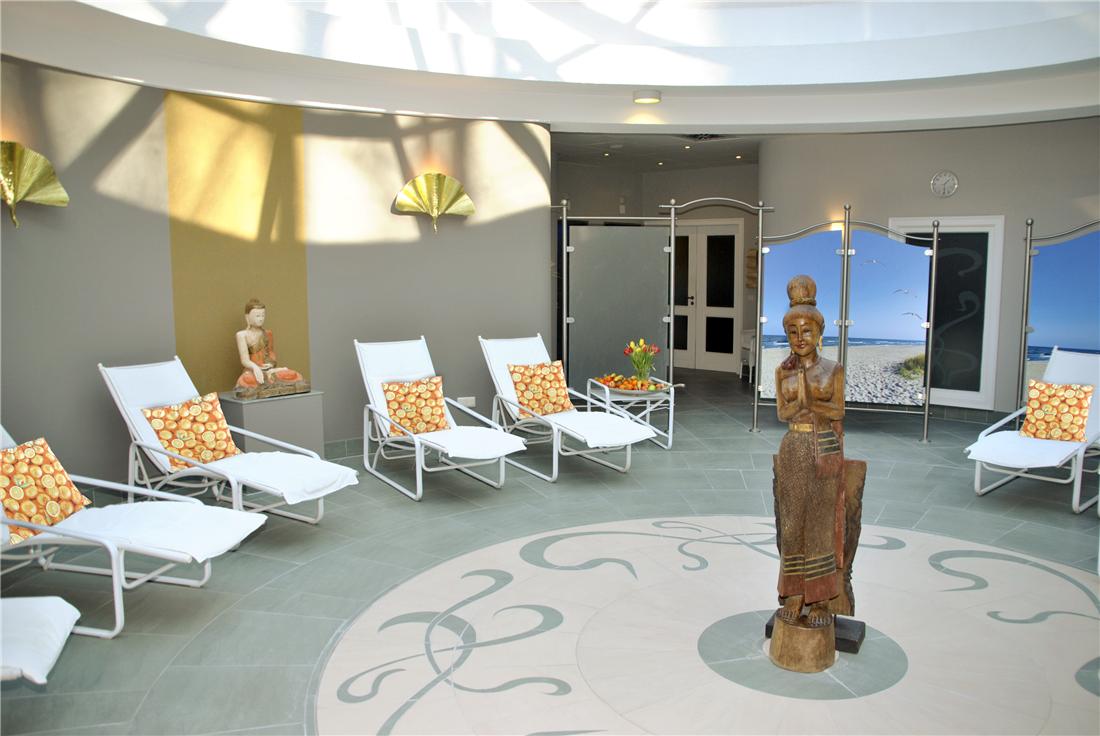 Et stort og koselig innredet spa i Bali-stil er tilgjengelig for deg, i tillegg til wellness med badstue og mulighet for ulike behandlinger. Her er det også innendørsbasseng med stor solterrasse. Ved enden av stranden finner du de typiske, koselige strandkurvene for late dager i solen.