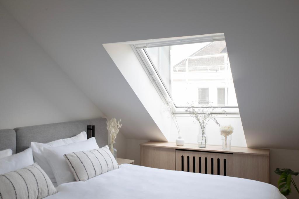 Enten du velger et studio eller en større leilighet, tilbys fleksibilitet for alle typer behov. Det er et perfekt alternativ for både korte og lange opphold. Beliggenheten er uslåelig – bare noen få skritt fra Beethovens hus, 5 minutters gange fra Opera Bonn og 200 m fra Bonns gamle rådhus og de viktigste andre severdighetene innen gangavstand i Bonn.