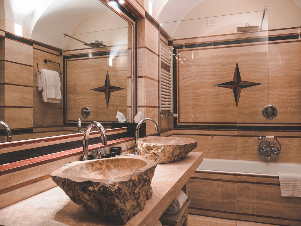 I Montalcino ligger Castello di Velona Resort Thermal SPA & Winery fint til i en nasjonalpark. Herfra er vil du bare ha 15 minutter å kjøre til Abbazia di Sant'Antimo og Montalcino-fortet. Dette hotellet i luksuriøs stil ligger 14,2 mi (22,8 km) unna Castello Banfi og 15,1 mi (24,4 km) unna Leoninihagen. Føl deg som hjemme i et av de 45 gjesterommene, som er individuelt dekorert og utstyrt med minibar og LCD-TV. Sengen har dundyner og sengetøy av topp kvalitet. Du kan holde deg oppdatert med wi-fi (inkludert) på rommet, og underholdningen er sikret med digital-TV. Rommene har privat bad med designertoalettartikler og bideer. Avstandene som vises er rundet av til nærmeste 0,1 kilometer.