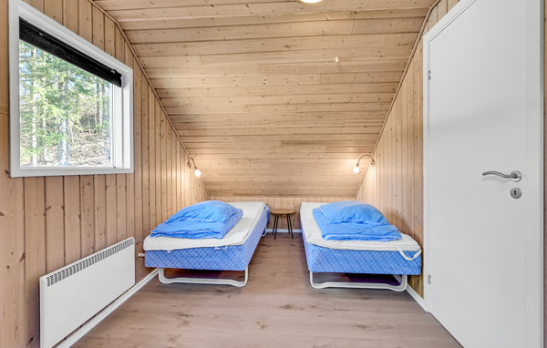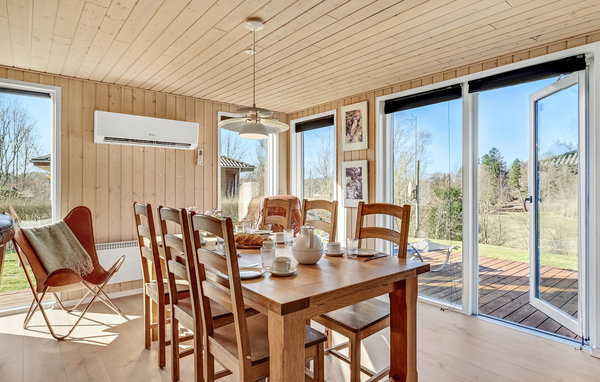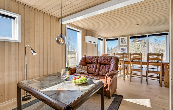 Innkvarteringen din ligger i et vakkert, rolig naturmiljø som har mye å tilby. Gå inn i et naturlig hus forbundet med naturen og en åpen og romslig stue. Utenfor venter en treveranda der du kan slappe av i solen.