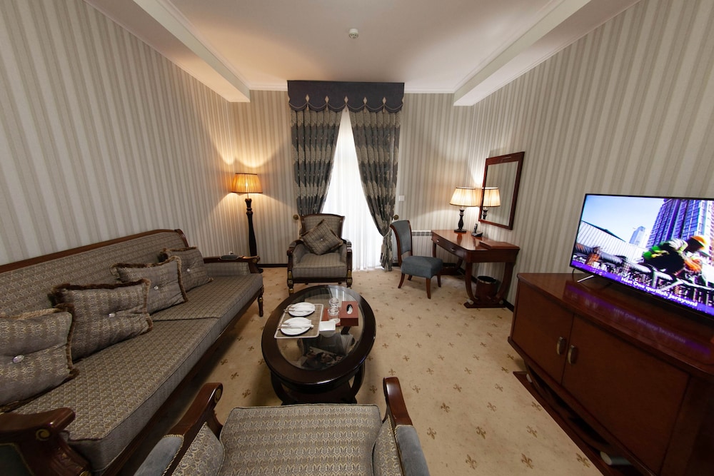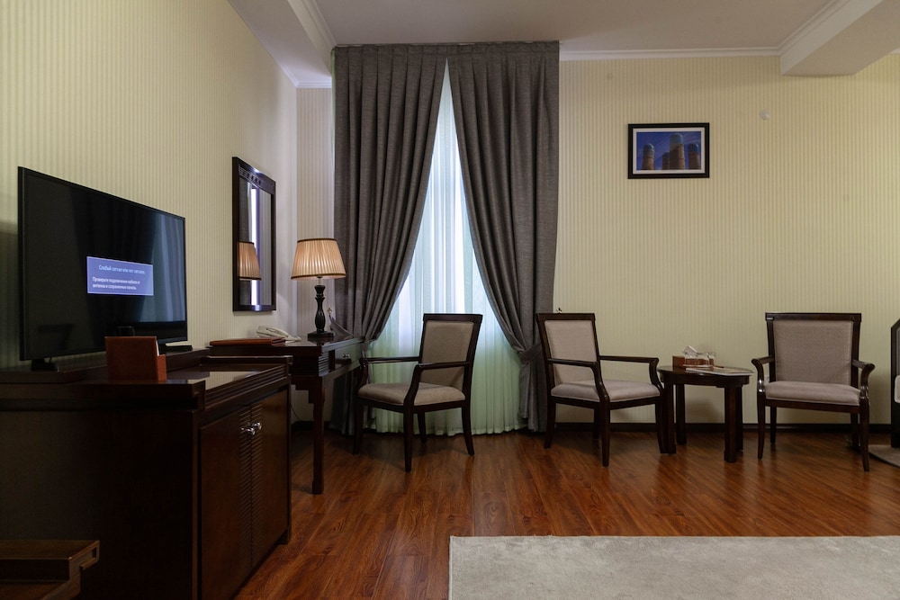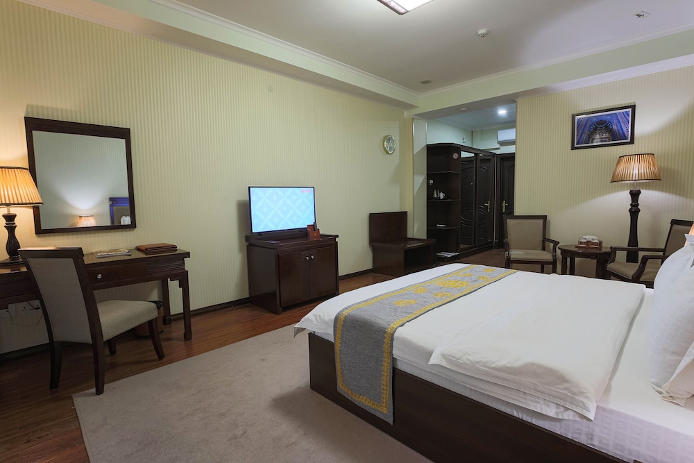 Velger du Zargaron Plaza som overnattingssted i Bukhara, er du mindre enn en 15 minutters kjøretur unna Erkeengelen Mikaels kirke og Chor-Minor. Dette hotellet med spa ligger 1,1 mi (1,8 km) unna Char Minar og 1,4 mi (2,3 km) unna Markazij stadion Bukhoro. Føl deg som hjemme i et av de 66 aircondition-avkjølte gjesterommene, som også har minibar. Du kan holde deg oppdatert med wi-fi (inkludert) på rommet, og underholdningen er sikret med kabel-TV. Rommene har privat bad med badekar eller dusj, toalettartikler (inkludert) og bideer. Rommene har skrivebord og separat sitteområde, og rengjøring tilbys daglig. Avstandene som vises er rundet av til nærmeste 0,1 kilometer.