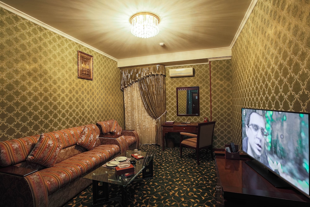 Gjester har tilgang til blant annet renseri-/vaskeritjenester, en døgnåpen resepsjon og bagasjeoppbevaring. Planlegger du en event i Bukhara? Som en av dette hotellet sine gjester tilbys du møte- og konferanserom på opp til 40 kvadratmeter, blant annet konferanserom og møterom. Gjestene tilbys flyplasstransport døgnet rundt, mot et tillegg, og ubetjent parkering (inkludert) er tilgjengelig i nærheten. Slapp av på stedets spa, hvor du kan nyte massasjer og ansiktsbehandlinger. Dette hotellet tilbyr også wi-fi (inkludert), concierge-tjenester og bankettsal. På Zargaron Plaza kan du spise et bedre måltid i restauranten. Rund av dagen med noe å drikke i baren/loungen. Frokostbuffé tilbys daglig fra kl. 07.00 til kl. 10.00 mot et tillegg. LOCALIZEDu må betale følgende avgifter på overnattingsstedet (skatter kan være inkludert):