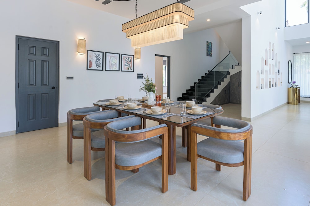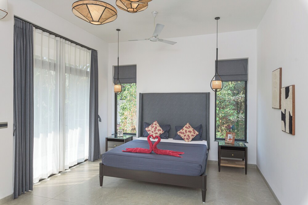 Velger du Villa Calangute Phase 6 som overnattingssted i Calangute, er du mindre enn et kvarters gange unna både Calangute strand og Baga-stranden. Denne villaen ligger 2,1 mi (3,4 km) unna Candolim strand og 4,7 mi (7,5 km) unna Anjuna strand. Føl deg som hjemme i et av de aircondition-avkjølte gjesterommene, som også har Flatskjerm-TV. Sengen har overmadrass og sengetøy av topp kvalitet. Du kan holde deg oppdatert med wi-fi (inkludert) på rommet, og underholdningen er sikret med parabol-TV. Rommene har safe og takvifte. Avstandene som vises er rundet av til nærmeste 0,1 kilometer.