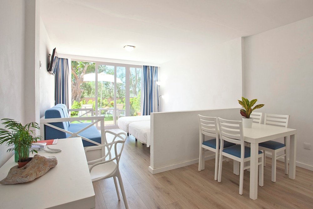 HYB Eurocalas Water Park - All inclusive ligger i nærheten av strand i Manacor, kun en 5 minutters spasertur fra Cala Antena-stranden og 14 minutter til fots fra Cala Domingo strand. Dette hotellet med familievennlig profil ligger 6,6 mi (10,5 km) unna Vall d'Or golf og 9 mi (14,4 km) unna Cala Varques. Føl deg som hjemme i et av de 397 aircondition-avkjølte gjesterommene. Rommene har egen balkong. Du kan holde deg oppdatert med wi-fi (inkludert) på rommet. Rommene har privat bad med dusj, toalettartikler (inkludert) og hårføner. Avstandene som vises er rundet av til nærmeste 0,1 kilometer.
