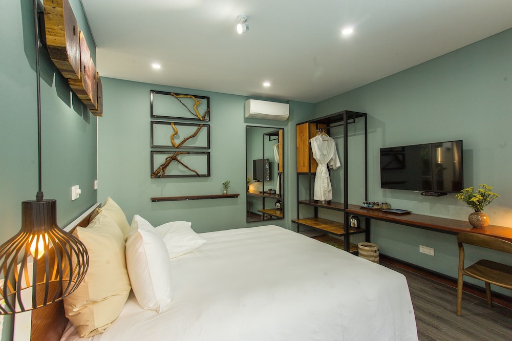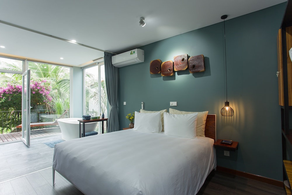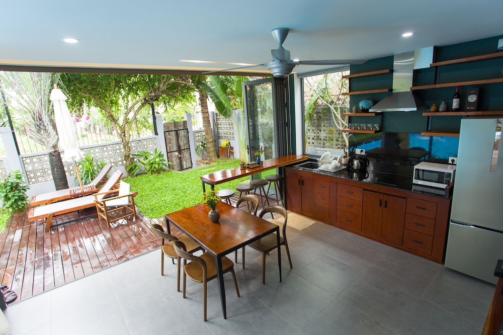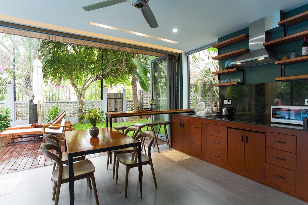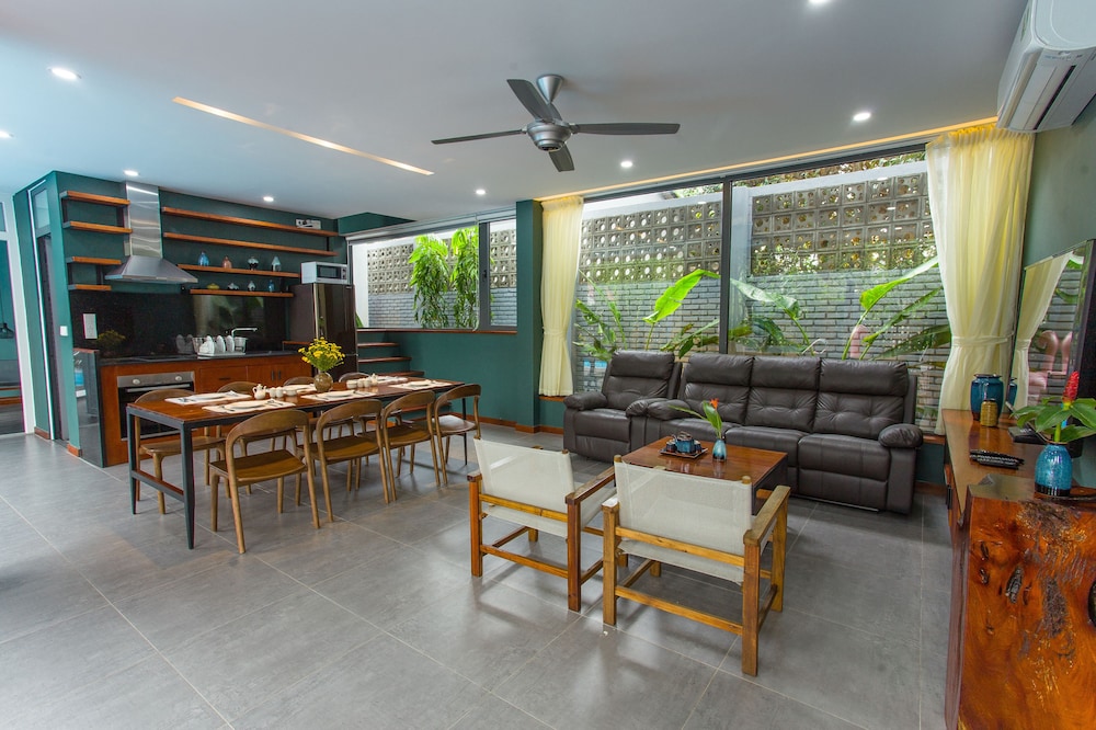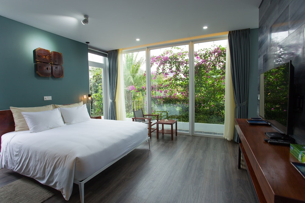 Dersom du velger Chay Villas An Bang i Hoi An (Cam An) som overnattingssted vil du bare være en 4 minutters kjøretur fra An Bang strand og 7 minutter fra Hoi An nattlig marked. Dette leilighetshotellet ligger 9,1 mi (14,6 km) unna My Khe-stranden og 3,4 mi (5,5 km) unna Hoi An-markedet. Føl deg som hjemme i et av de 7 gjesterommene, som er individuelt dekorert, og som har et kjøkken. Rommene har egen møblert terrasse. Rommene har en flatskjerm-TV med Premium-kanaler, og wi-fi (inkludert) sørger for at du kan holde deg oppdatert. Rommene har delvis åpen baderomsløsning med dype avslapningsbadekar og regndusjhode. Avstandene som vises er rundet av til nærmeste 0,1 kilometer.