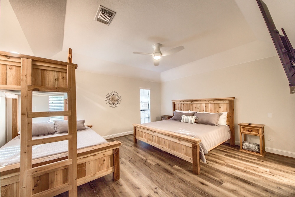 Denne ferieboligen i Canyon Lake (Sattler) ligger rett ved Guadalupe River, og du er også bare 2 minutter med bil unna Whitewater Amphitheatre. Denne ferieboligen ligger 11,6 mi (18,6 km) unna Gruene Hall og 13,9 mi (22,3 km) unna Comal River. Føl deg som hjemme i denne ferieboligen, som er utstyrt med kjøleskap og smart-TV. Wi-fi (inkludert) gjør at du kan holde deg oppdatert. Bekvemmelighetene omfatter kaffetraktere/tekokere og vaskemaskin. Avstandene som vises er rundet av til nærmeste 0,1 kilometer.