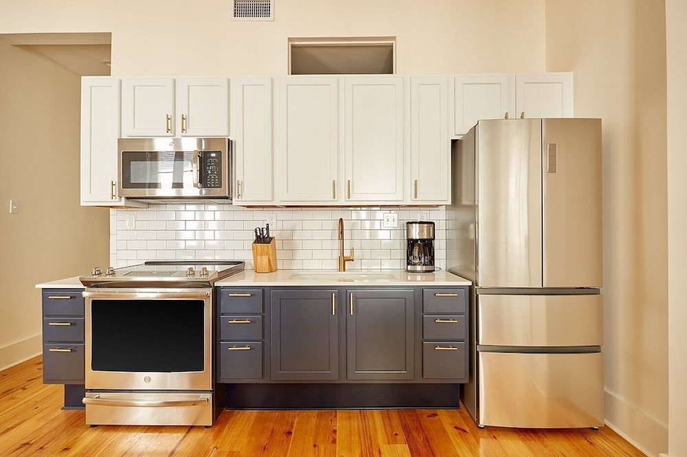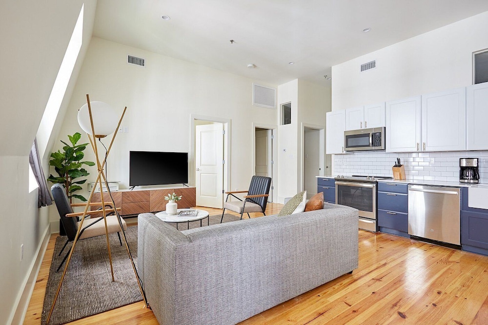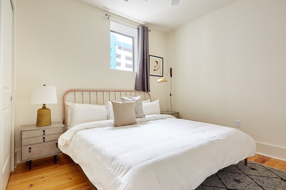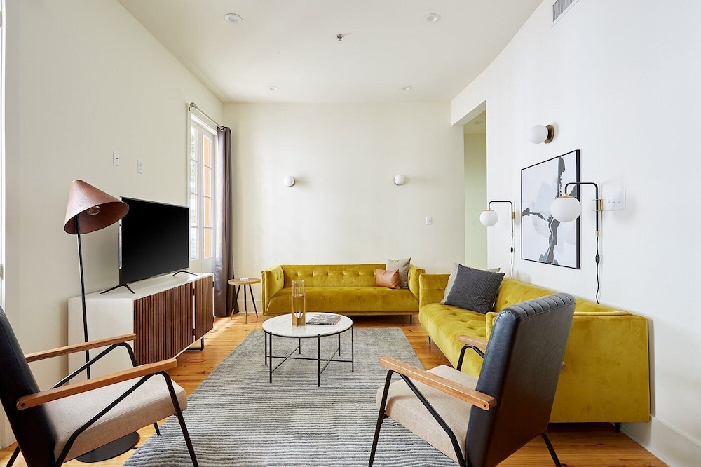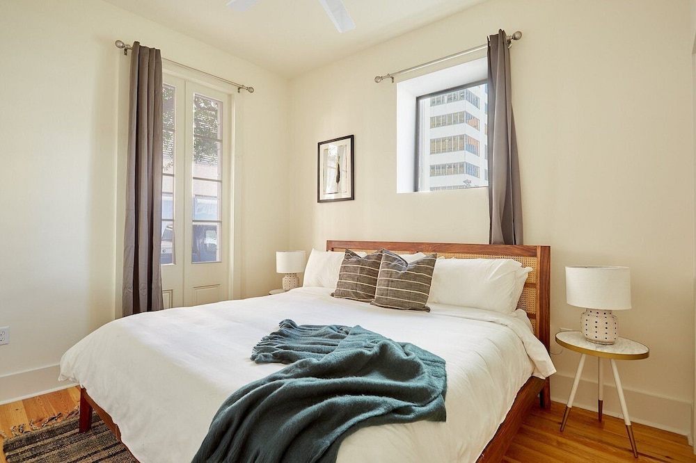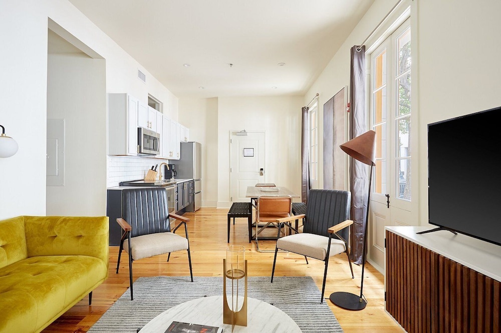 The Louie Hotel New Orleans, Belvilla District 6 Formerly Sonder i New Orleans (New Orleans Central Business District) ligger kun 4 minutter å gå fra Canal Street og 7 minutter til fots fra Bourbon Street. Dette leilighetshotellet ligger 0,6 mi (0,9 km) unna Caesars Superdome og 0,7 mi (1,1 km) unna Caesars New Orleans Casino. Føl deg som hjemme i et av de 8 gjesterommene, som er individuelt dekorert, og som har et kjøkken med kjøleskap og mikrobølgeovn. Underholdningen er sikret med en 55-tommers flatskjerm-TV med digital-TV, og wi-fi (inkludert) gjør at du kan holde deg oppdatert. Rommene har vannkoker og strykejern/-brett, og rengjøring tilbys etter avtale. Avstandene som vises er rundet av til nærmeste 0,1 kilometer.