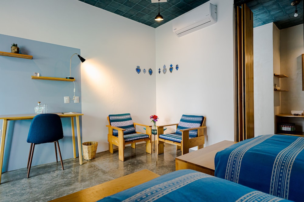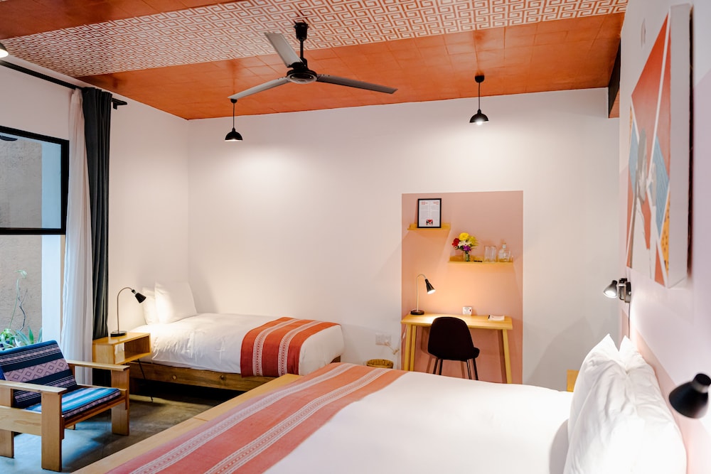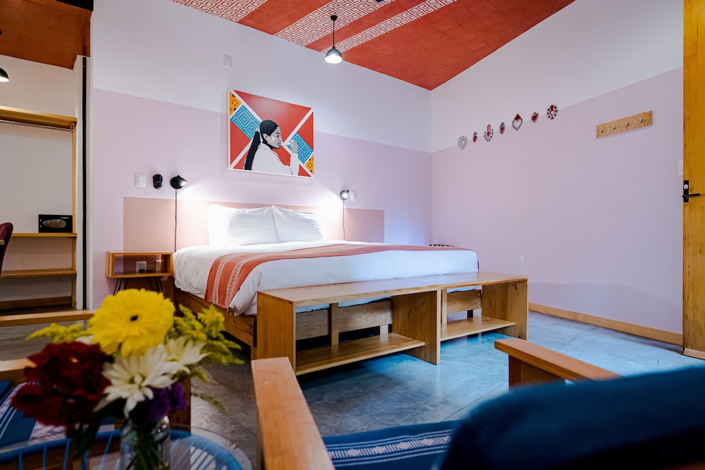 Dersom du velger Hotel con Corazón Oaxaca som overnattingssted, vil du bo sentralt i Oaxaca mindre enn 10 minutter til fots fra Rufino Tamayo-museet og Jernbanemuseet. Dette hotellet ligger 0,9 mi (1,5 km) unna Zócalo og 1,2 mi (1,9 km) unna Oaxaca etnobotaniske hage. Føl deg som hjemme i et av de 14 aircondition-avkjølte gjesterommene. Du kan holde deg oppdatert med wi-fi (inkludert) på rommet. Rommene har privat bad med dusj, toalettartikler (inkludert) og hårføner. Rommene har safe og flaskevann (inkludert), og rengjøring tilbys daglig. Avstandene som vises er rundet av til nærmeste 0,1 kilometer.