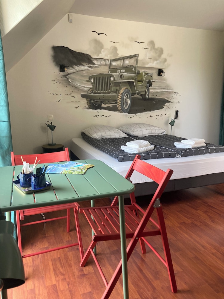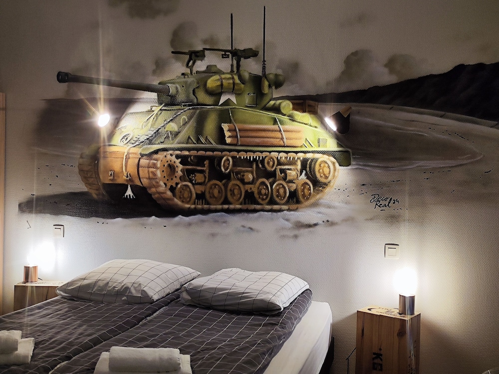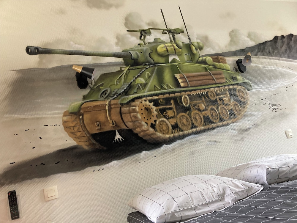 Med fin beliggenhet i Colleville-sur-Mer er Résidence de Tourisme Le Sherman bare 10 minutter unna D-Day Omaha Museum og Omaha Beach med bil. Dette motellet med golfmuligheter ligger 7,8 mi (12,6 km) unna Pointe du Hoc og 10,5 mi (16,9 km) unna Cathedrale Notre-Dame Bayeux. Overnatt i et av de 4 gjesterommene, som har Flatskjerm-TV. Du kan holde deg oppdatert med wi-fi (inkludert) på rommet, og underholdningen er sikret med digital-TV. Rommene har privat bad med dusj, toalettartikler (inkludert) og hårføner. Rommene har safe og vannkoker, og rengjøring tilbys daglig. Avstandene som vises er rundet av til nærmeste 0,1 kilometer.