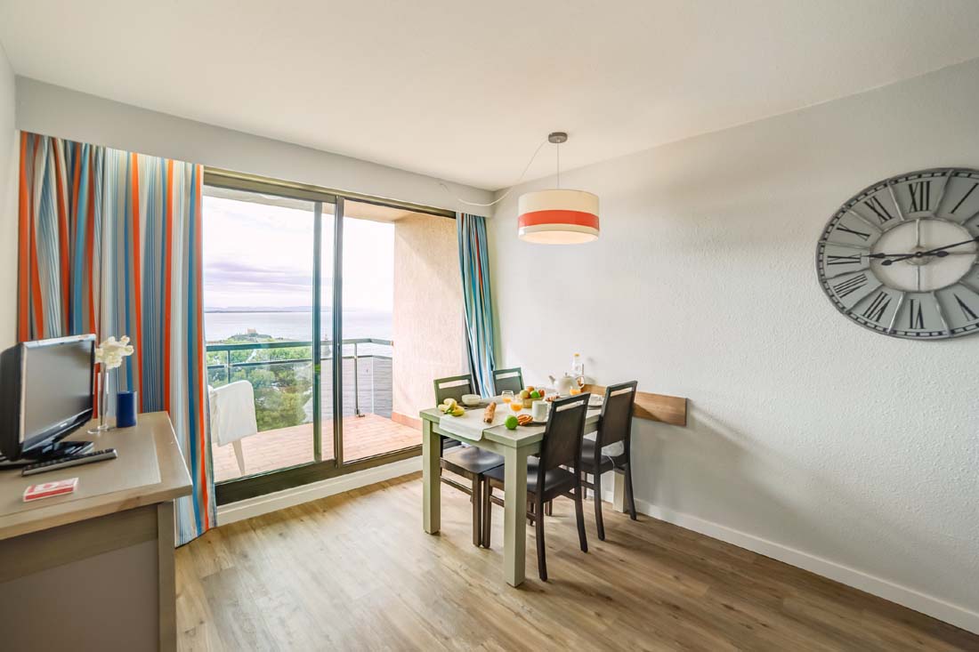 Hotellet ligger på klippene som vender mot havet, og alle rom har en fantastisk utsikt over bukten. Maeva Les Balcons Collioure tilbyr en privat strand, og et utendørsbasseng. Innen gangavstand kan du ta deg til sentrum for shopping, restauranter eller til den offentlige stranden. Aktiviteter som tennis, golf, ridning og vannsport finnes innen et par kilometers avstand (3-7 km.). På området er det mulig å leie sykler (mot avgift), som anbefales for å oppleve naturen. Hotellet tilbyr parkering (mot avgift).