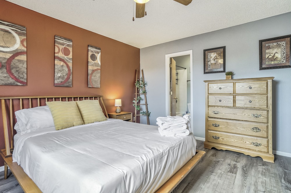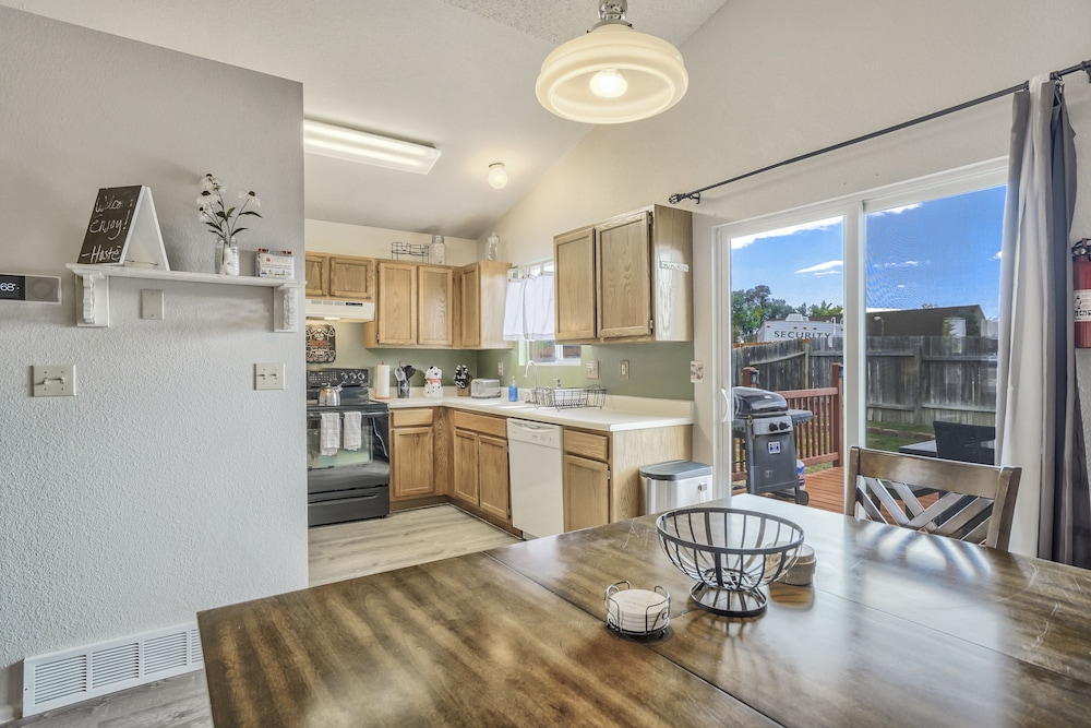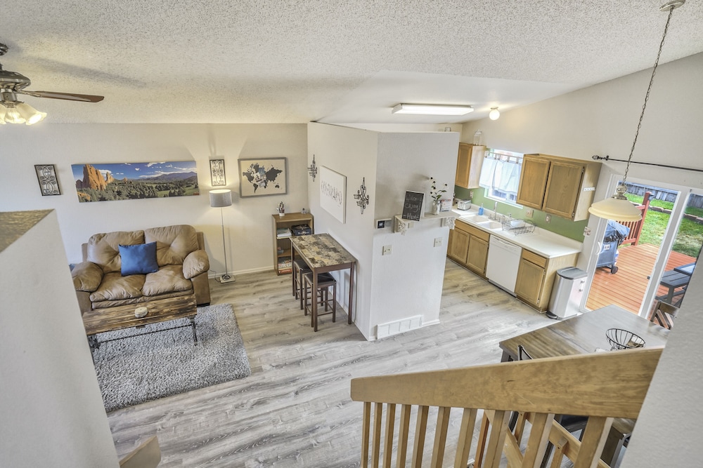 Velger du denne ferieboligen som overnattingssted i Colorado Springs, har du bare 15 minutter å kjøre til både Broadmoor World Arena og Peterson flyvåpenbase. Denne ferieboligen ligger 12,3 mi (19,8 km) unna Garden of the Gods og 9,9 mi (15,9 km) unna Cheyenne Mountain zoologiske hage. Føl deg som hjemme i denne ferieboligen, som er utstyrt med et kjøkken med kjøleskap og stekeovn. Wi-fi (inkludert) gjør at du kan holde deg oppdatert. Bekvemmelighetene omfatter mikrobølgeovn og vaskemaskin/tørketrommel. Avstandene som vises er rundet av til nærmeste 0,1 kilometer.