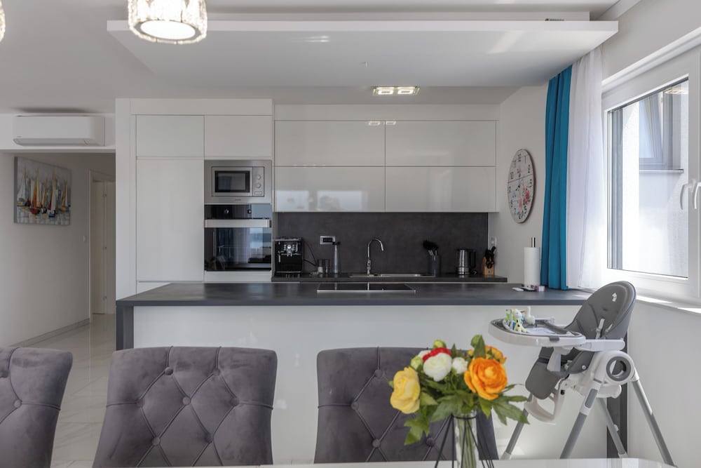 Velger du denne leiligheten i Crikvenica som overnattingssted, bor du i nærheten av strand, mindre enn 10 minutters gange fra Kvarnerbukta og Thalassoterapi Crikvenica, spesialsykehus. Denne leiligheten ligger 1,3 mi (2,1 km) unna Crikvenica Town Museum og 1,5 mi (2,4 km) unna Internasjonal strand. Føl deg som hjemme i denne leiligheten, som er utstyrt med airconditioning og et kjøkken med kjøleskap og stekeovn. Det finnes en privat balkong. Underholdningen er sikret med en flatskjerm-TV med digital-TV, og wi-fi (inkludert) gjør at du kan holde deg oppdatert. Bekvemmelighetene omfatter mikrobølgeovn og kaffetraktere/tekokere. Avstandene som vises er rundet av til nærmeste 0,1 kilometer.