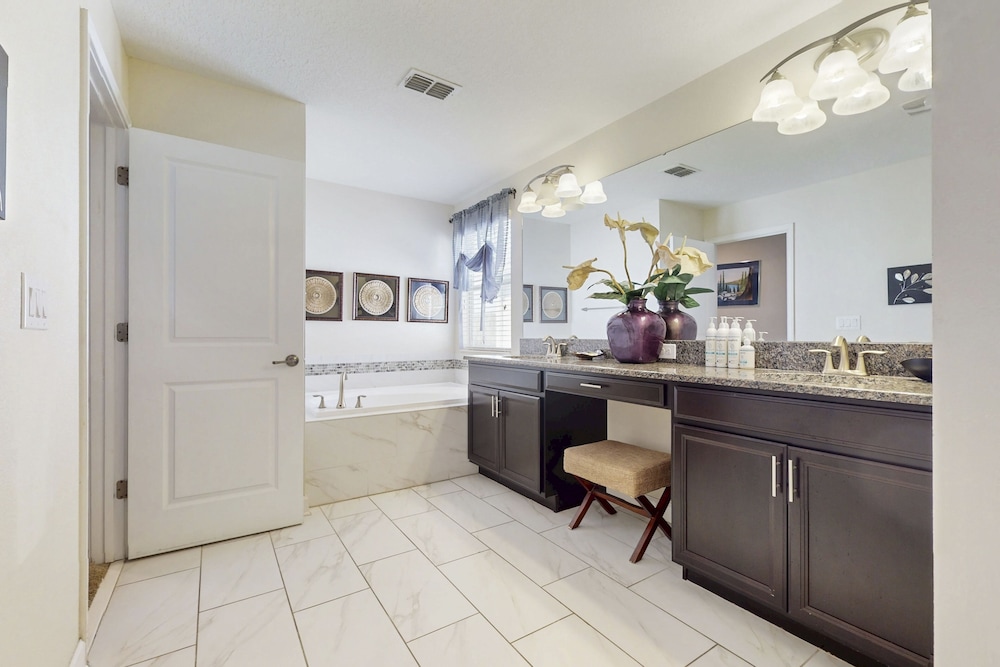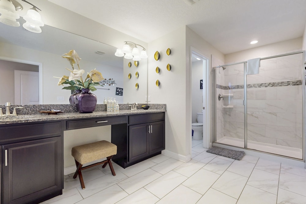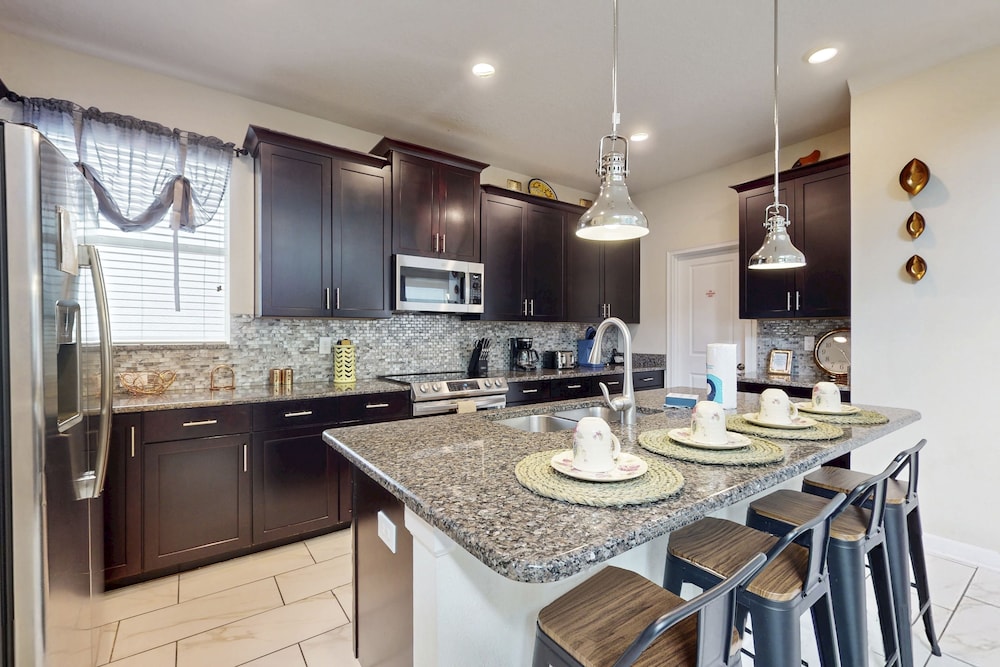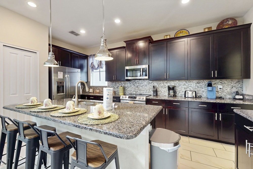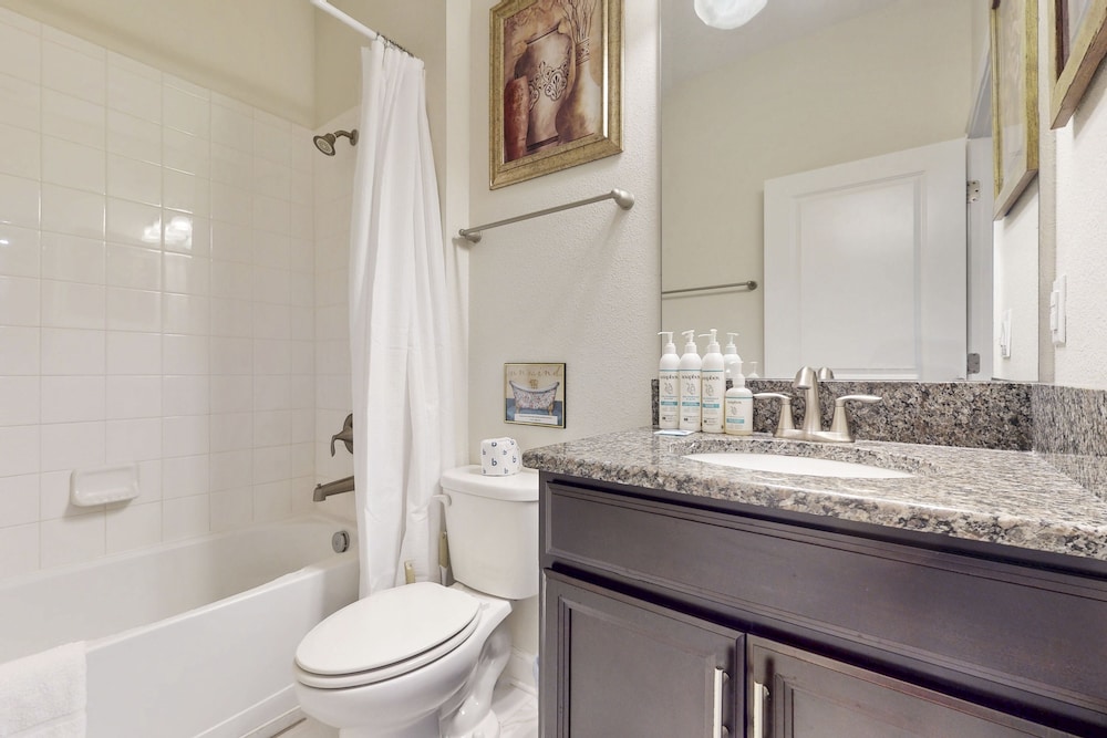 Når du har denne ferieboligen i Four Corners som overnattingssted, bor du nær stranden, kun 15 minutter å kjøre fra ChampionsGate Golf Club og Reunion Resort Golf Course. Denne ferieboligen ligger 11,1 mi (17,9 km) unna Walt Disney World® Resort og 11,3 mi (18,2 km) unna GamlebyenOld Town. Føl deg som hjemme i denne ferieboligen, som er individuelt dekorert. Badet har badekar eller dusj. Avstandene som vises er rundet av til nærmeste 0,1 kilometer.