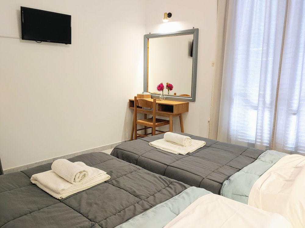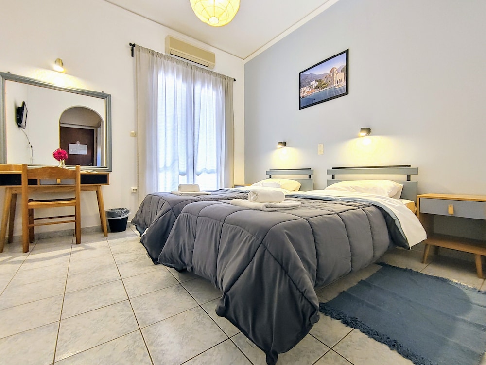 Aegina Hotel ligger i hjertet av Egina. Dersom du bor her, vil du ha mindre enn 5 minutter å gå til Egina arkeologiske museum og Apollons tempel. Dette hotellet ligger 0,3 mi (0,4 km) unna Fiskemarked og 0,3 mi (0,5 km) unna Folkloremuseum. Føl deg som hjemme i et av de 19 aircondition-avkjølte gjesterommene som også har minibar og Flatskjerm-TV. Du kan holde deg oppdatert med wi-fi (inkludert) på rommet, og underholdningen er sikret med digital-TV. Badene har dusj og hårføner. Rommene har skrivebord og flaskevann (inkludert), og rengjøring tilbys daglig. Avstandene som vises er rundet av til nærmeste 0,1 kilometer.