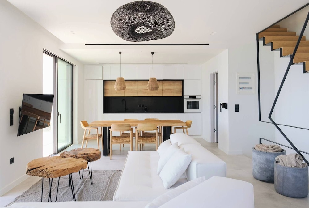 I Egina ligger Floating Cubes Villas Aegina i nærheten av strand, kun 3 minutters gange fra Marathonas-stranden og mindre enn en 5 minutters kjøretur fra Aeginitissa-stranden. Denne villaen ligger 1,4 mi (2,3 km) unna Antikk olivenlund og 2,6 mi (4,1 km) unna Fiskemarked. Føl deg som hjemme i et av de 2 gjesterommene, som er individuelt dekorert, og som har et kjøkken med kjøleskap/fryseboks i full størrelse og ovn. Sengen har memory foam-madrass og sengetøy i egyptisk bomull. Rommene har egen møblert balkong eller terrasse. Underholdningen er sikret med en 50-tommers smart-TV med kabel-TV, og wi-fi (inkludert) gjør at du kan holde deg oppdatert. Avstandene som vises er rundet av til nærmeste 0,1 kilometer.