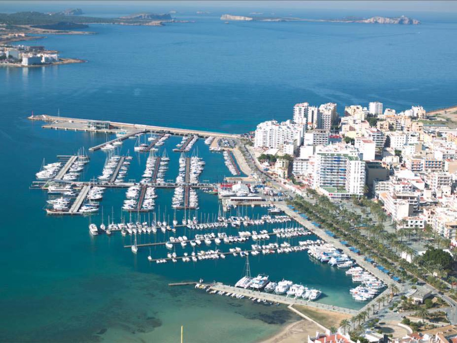 Längs den härliga hamn- och strandpromenaden Passeig de ses Fonts växer palmer och gummiväxter. Här finns stora fontäner som belyses på kvällen. På ena sidan gatan har du San Antoni Bay där yachterna ligger uppradade och ett stenkast bort ligger den underbara stranden. På andra sidan gatan ligger flera trevliga restauranger, caféer och butiker med utsikt över havet.