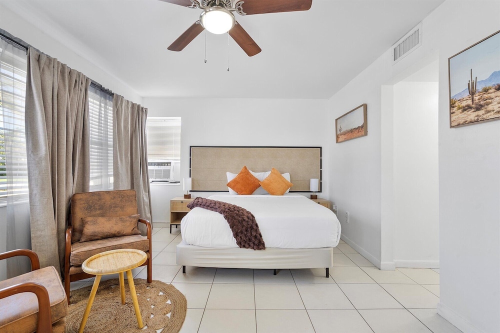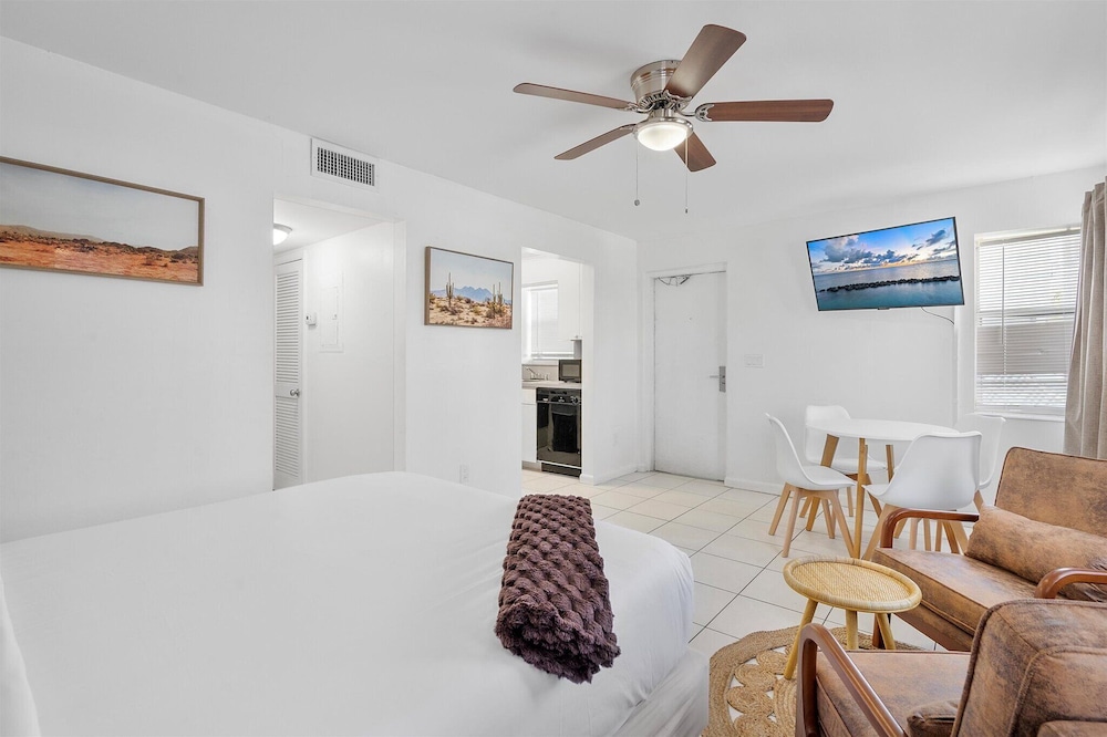 Med et opphold på Coastal Sunset i Hollywood (Hollywood Beach) vil du være en 1 minutters kjøretur unna Hollywood Beach og 12 minutter fra Aventura Mall. Dette leilighetshotellet ved stranden ligger 7,1 mi (11,5 km) unna Port Everglades og 8,1 mi (13 km) unna Seminole Hard Rock Casino Hollywood. Føl deg som hjemme i et av de 12 gjesterommene, som er individuelt dekorert, og som har et kjøkken med kjøleskap/fryseboks i full størrelse og ovn. Underholdningen er sikret med en 50-tommers smart-TV med digital-TV, og wi-fi (inkludert) gjør at du kan holde deg oppdatert. Rommene har safe og aviser (inkludert), og rengjøring tilbys etter avtale. Avstandene som vises er rundet av til nærmeste 0,1 kilometer.