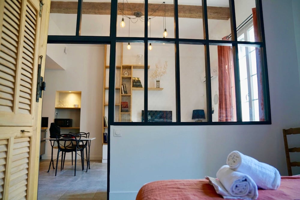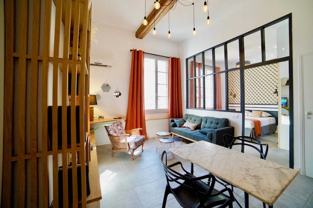 Home Chic Home Les Suites de La Comédie ligger sentralt plassert i Montpellier, en 4 minutters spasertur fra Place de la Comedie og 5 minutter til fots fra Saint Roch-kirken. Dette leilighetshotellet ligger 1,7 mi (2,7 km) unna Corum konferansesenter og 2,2 mi (3,5 km) unna Peyrou-promenaden. Føl deg som hjemme i et av de 5 gjesterommene, som er individuelt dekorert, og som har et kjøkken med kjøleskap og ovn. Underholdningen er sikret med en 55-tommers flatskjerm-TV med kabel-TV, og wi-fi (inkludert) gjør at du kan holde deg oppdatert. Rommene har skrivebord og mikrobølgeovn, og rengjøring tilbys etter avtale. Avstandene som vises er rundet av til nærmeste 0,1 kilometer.