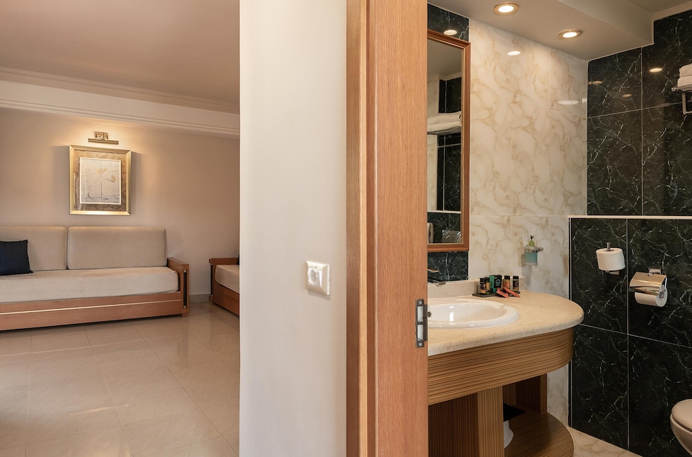 Gjester har tilgang til blant annet renseri-/vaskeritjenester, en døgnåpen resepsjon og bagasjeoppbevaring. Gjestene tilbys ubetjent parkering (inkludert) på stedet. Slapp av på stedets spa, hvor du kan nyte massasjer, kroppsbehandlinger, og ansiktsbehandlinger. Her har du tilgang til blant annet 2 utendørsbassenger, et badeland (mot et tillegg) og et treningssenter. Dette resort-hotellet har i tillegg wi-fi (inkludert), concierge-tjenester og et spillrom. Du kan spise lunsj eller middag i denne resortens restaurant, Artemis Main Restaurant, eller få noe lett å bite i på kafeen. Rund av dagen med noe å drikke i baren/loungen, strandbaren eller bassengbaren. Frokostbuffé er inkludert og serveres daglig fra kl. 07.30 til kl. 10.30.Du må betale følgende avgifter på overnattingsstedet (skatter kan være inkludert):
