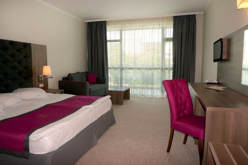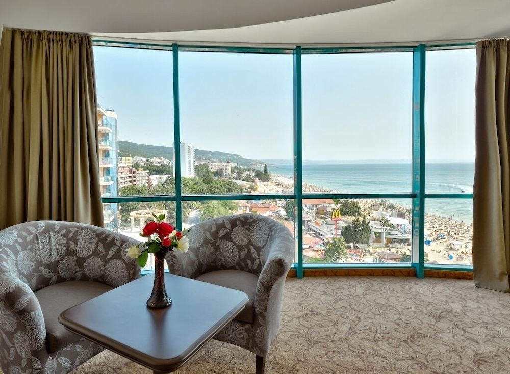 Dersom du velger Marina Grand Beach Hotel - All inclusive i Varna (Primorski) som ditt overnattingssted, vil du ha 3 minutter å gå til Golden Sands Beach og 9 minutter å gå til Aquapolis. Dette resort-overnattingsstedet med alt inkludert ligger 0,6 mi (1 km) unna Trifon Zarezan-stranden og 1,9 mi (3,1 km) unna Golden Sands yachtport. Føl deg som hjemme i et av de 234 gjesterommene, som har minibar (inkludert) og LED-TV. Du kan holde deg oppdatert med wi-fi (inkludert) på rommet, og underholdningen er sikret med kabel-TV. Rommene har privat bad med kombinert dusj/badekar, hårføner og badekåper. Rommene har skrivebord og separat sitteområde, og rengjøring tilbys daglig. Avstandene som vises er rundet av til nærmeste 0,1 kilometer.