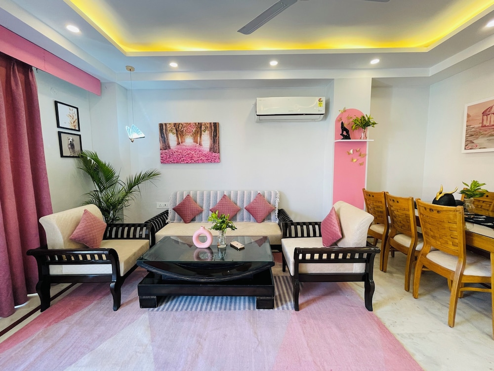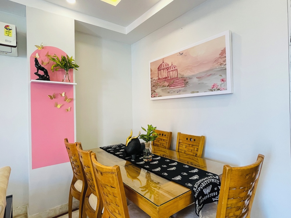 BedChambers Service Apartments Sector 38 ligger i sentrum av Gurugram. Med et opphold her vil du ha mindre enn 15 minutter å kjøre til DLF Cyber City og Medanta. Dette leilighetshotellet ligger 1,5 mi (2,4 km) unna The Paintball Co og 1,5 mi (2,4 km) unna M2K Corporate Park Shopping Plaza. Føl deg som hjemme på et av de 7 gjesterommene, som har air conditioning, og som har et kjøkken med kjøleskap og komfyrtopp. Sengen har Select Comfort-madrass og sengetøy i egyptisk bomull. Underholdningen er sikret med en 43-tommers LCD-TV med kabel-TV, og wi-fi (inkludert) gjør at du kan holde deg oppdatert. Rommene har skrivebord og mikrobølgeovn, og rengjøring tilbys daglig. Avstandene som vises er rundet av til nærmeste 0,1 kilometer.