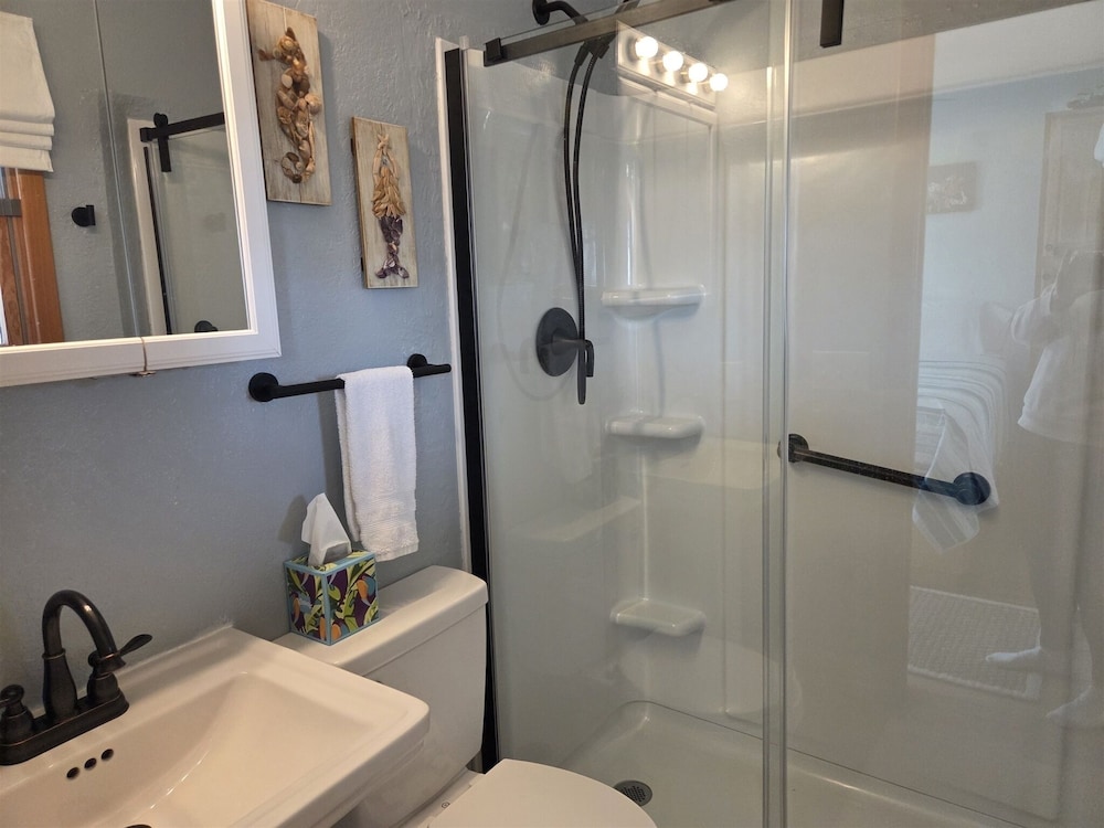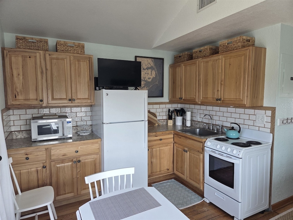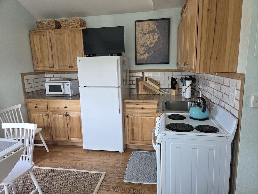 Velger du denne leiligheten i Hatteras, bor du på stranden, kun 3-minutter å gå fra Outer Banks Beaches og mindre enn 2 minutter med bil fra Hatteras Village velkomstsenter. Denne leiligheten ligger 1 mi (1,7 km) unna Hatteras Library og 1,2 mi (2 km) unna Village Marina. Føl deg som hjemme i denne leiligheten, som er utstyrt med airconditioning og et kjøkken med kjøleskap/fryseboks i full størrelse og mikrobølgeovn. Det finnes en privat balkong eller terrasse. Wi-fi (inkludert) gjør at du kan holde deg oppdatert, og underholdningen er sikret med kabel-TV. Avstandene som vises er rundet av til nærmeste 0,1 kilometer.