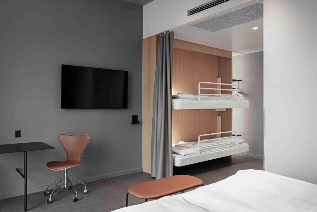 Alle rommene har moderne skandinavisk design og er utstyrt med en seng av høy kvalitet. Her er det skrivebord, flatskjerm-TV, eget bad, sengetøy og håndklær. Badet er utstyrt med dusj og hårføner, og alle rommene har også garderobeskap.